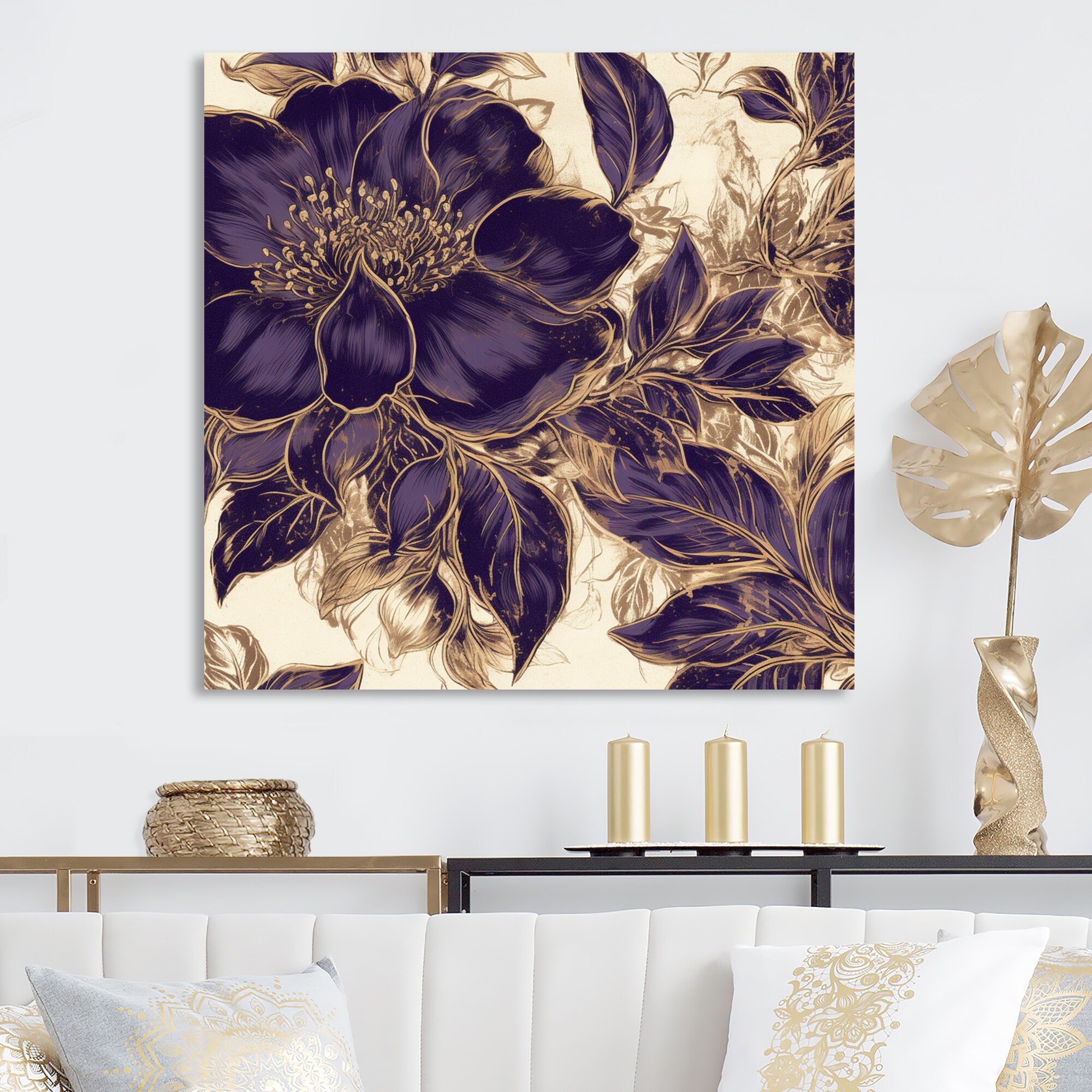 Designart "Blue Gold Peonies Emotions I" Floral Peony Metal Wall Art