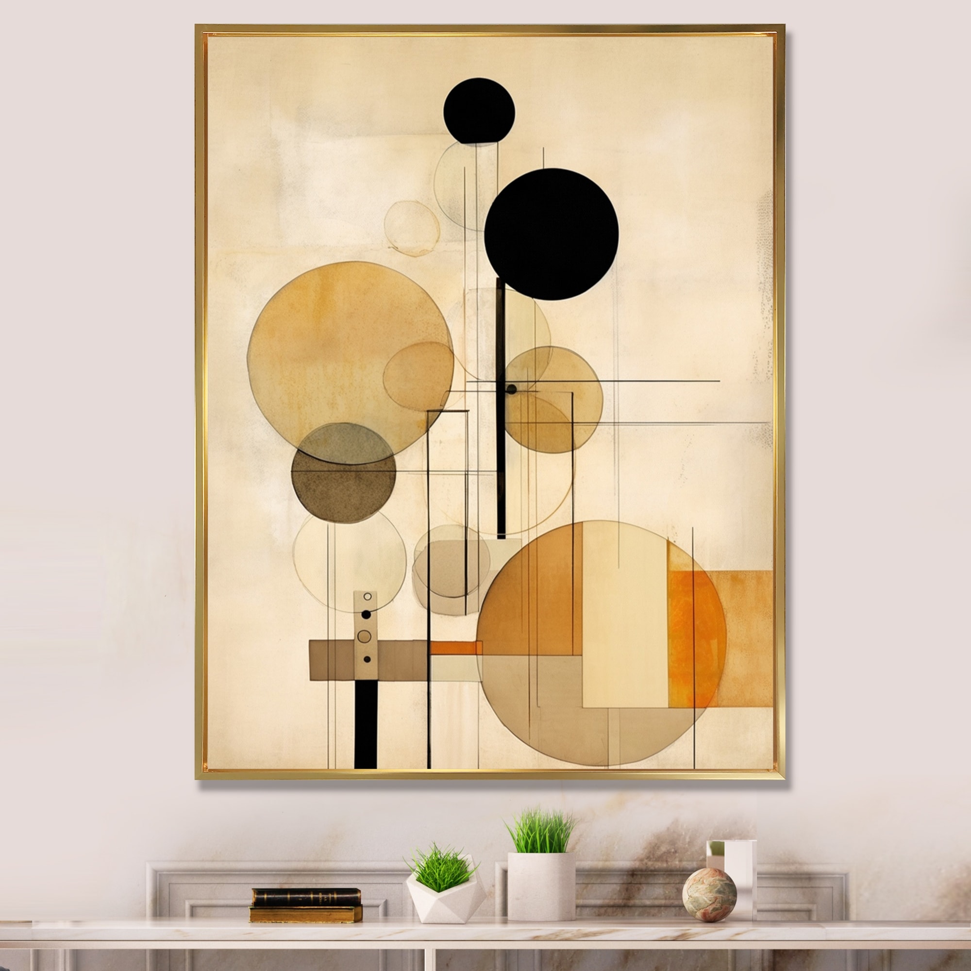 Designart "Beige Geometry in Motion I" Abstract Shapes Framed Wall Decor