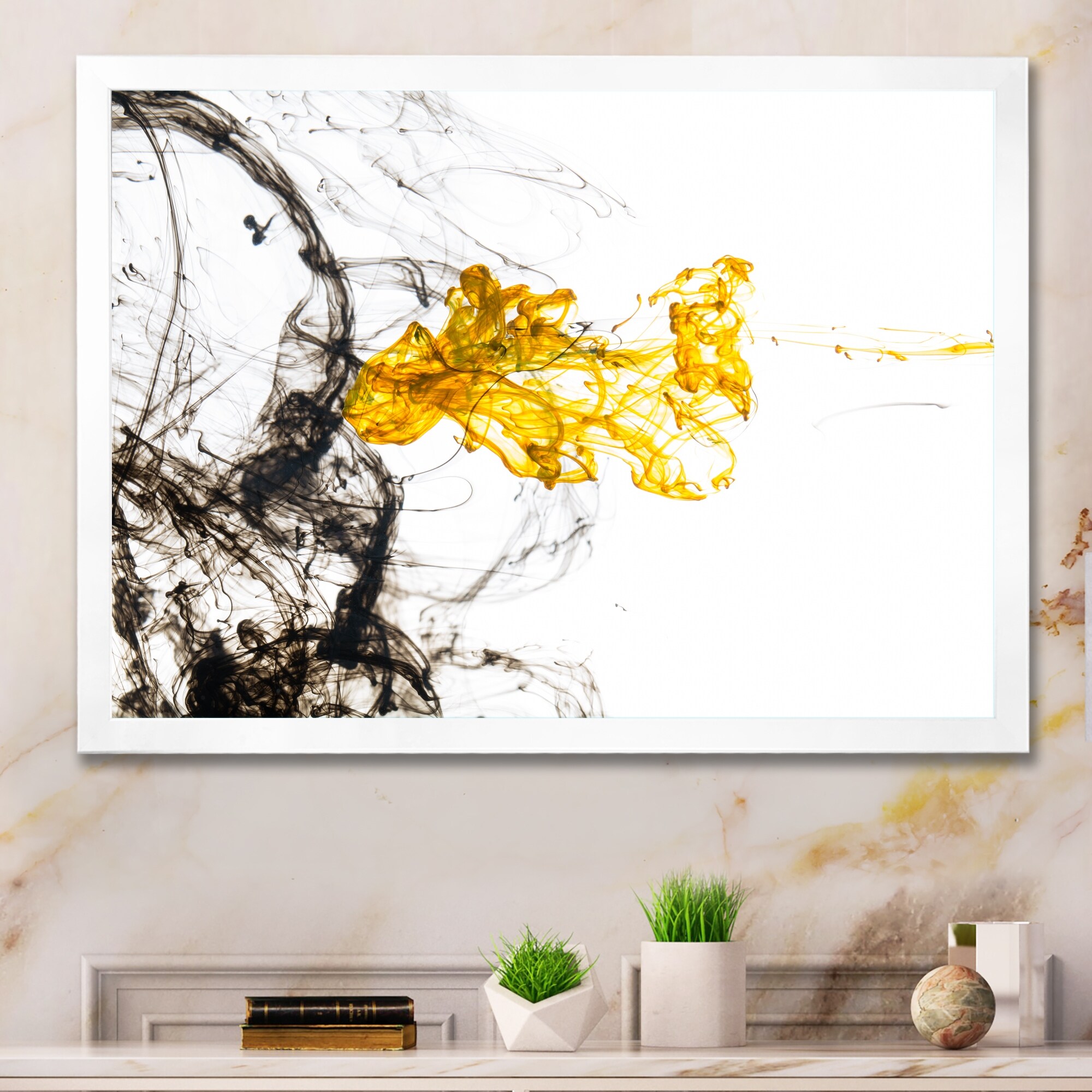 Designart "Colorful Abstract Twisted Wavy Shapes in Motion" Modern Framed Canvas Wall Art Print