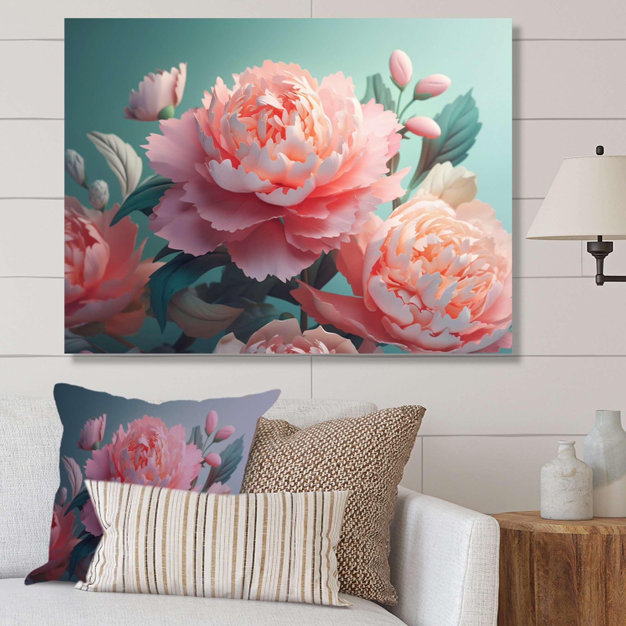 Designart "Pink Green Peony in Motion I" Floral Peony Canvas Wall Art