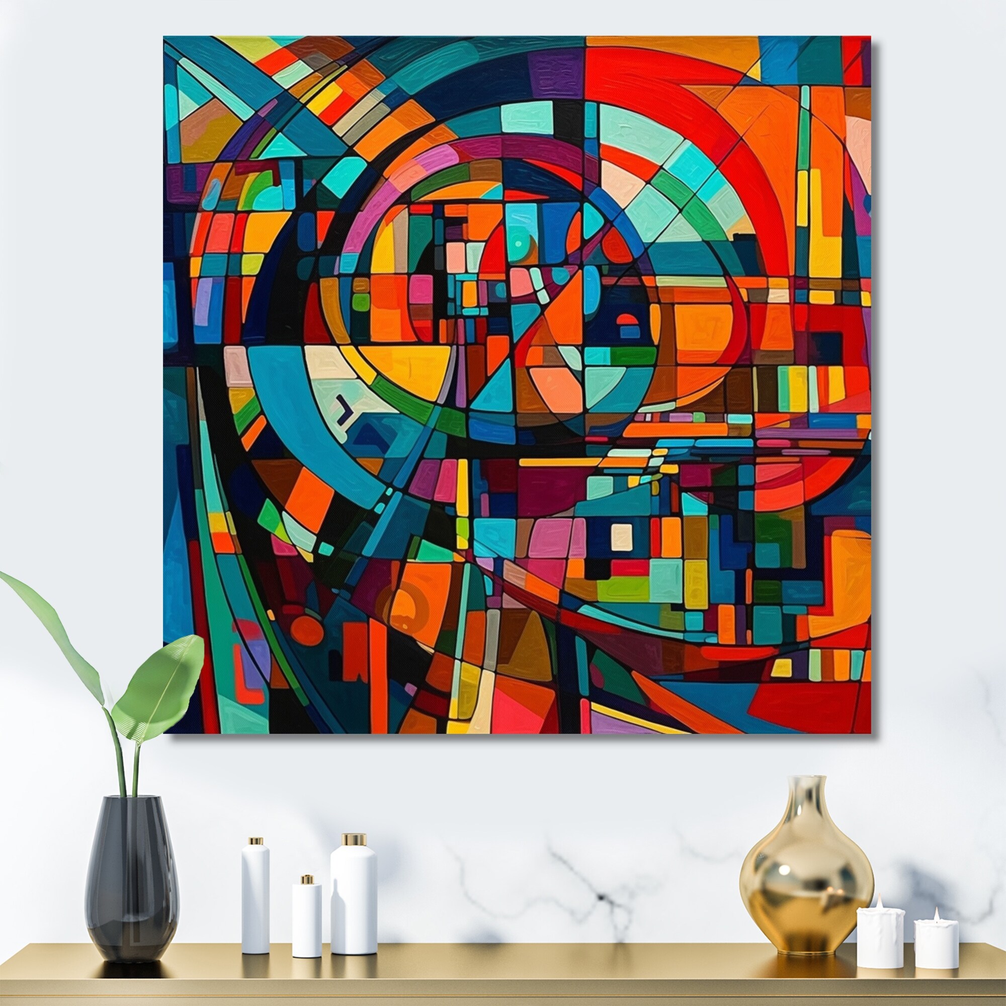 Designart "Orange Forces in Motion" Modern Geometric Canvas Print
