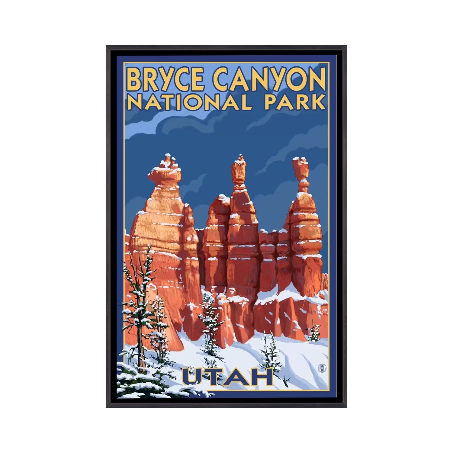 iCanvas "Bryce Canyon National Park (Three Hoodoos in Winter)" by Lantern Press Framed