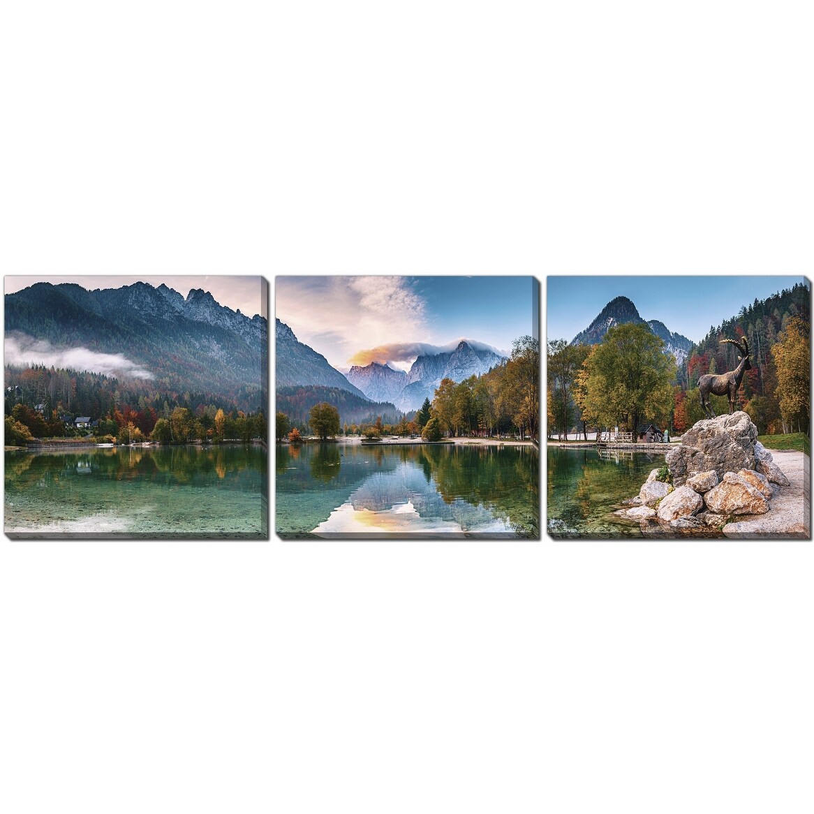 Designart "Panoramic Acadia National Park" Landscape Framed Canvas Wall Art Set of 3 - 4 Colors of Frames