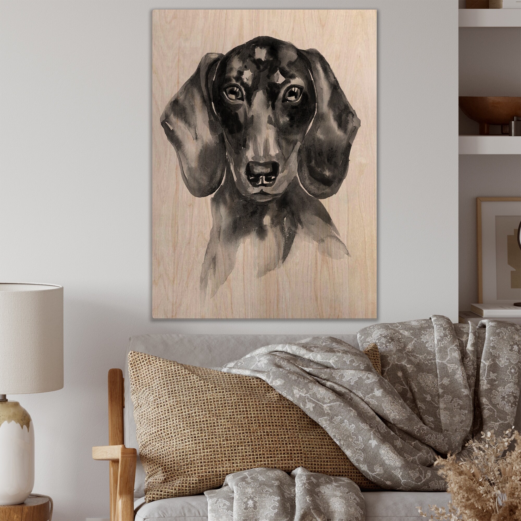 Designart 'Sweepy The Dachshund II' Traditional Wood Wall Art Panels - Natural Pine Wood