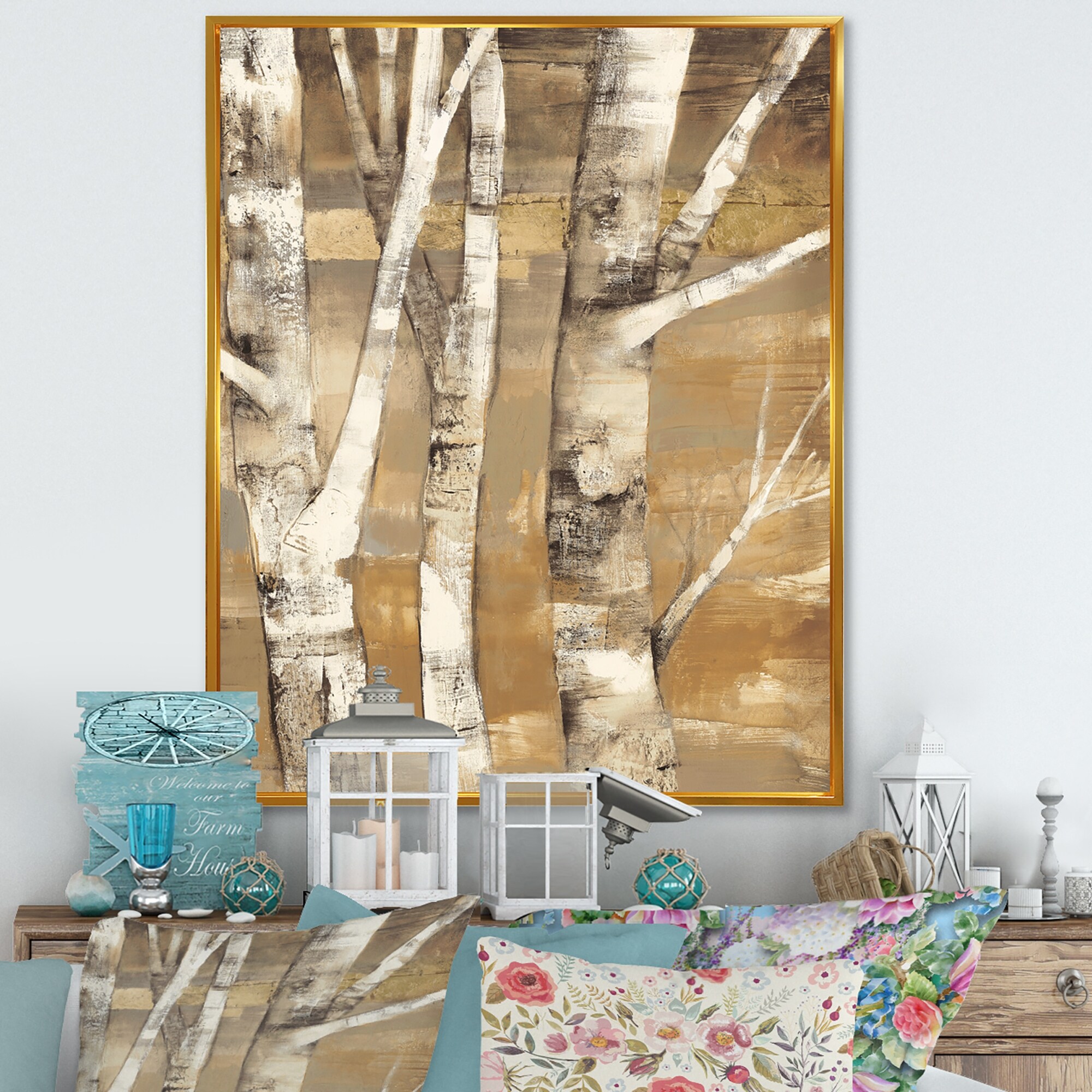 Designart "Natural Birch Forest I" Traditional Framed Canvas - Brown