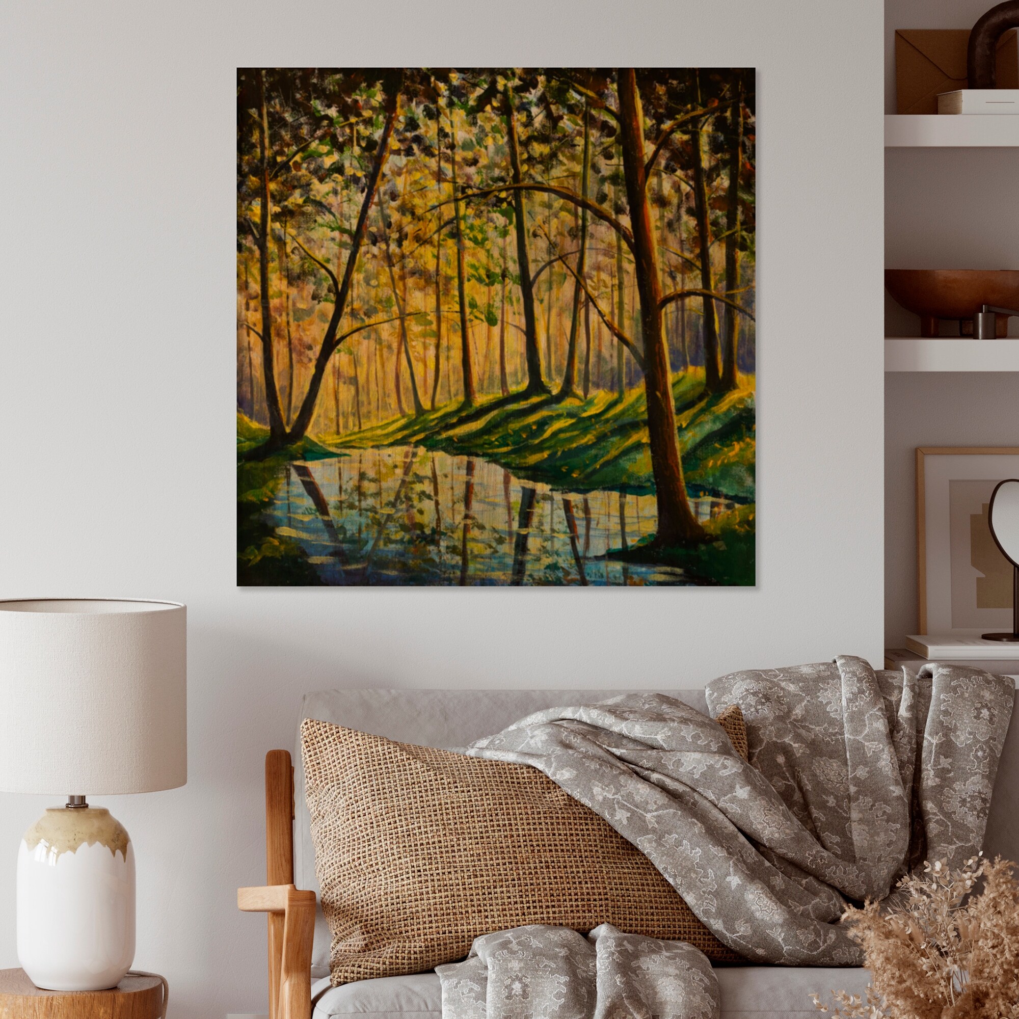 Designart 'Colorful Trees Abstract Forest Landscape' Modern Print on Natural Pine Wood