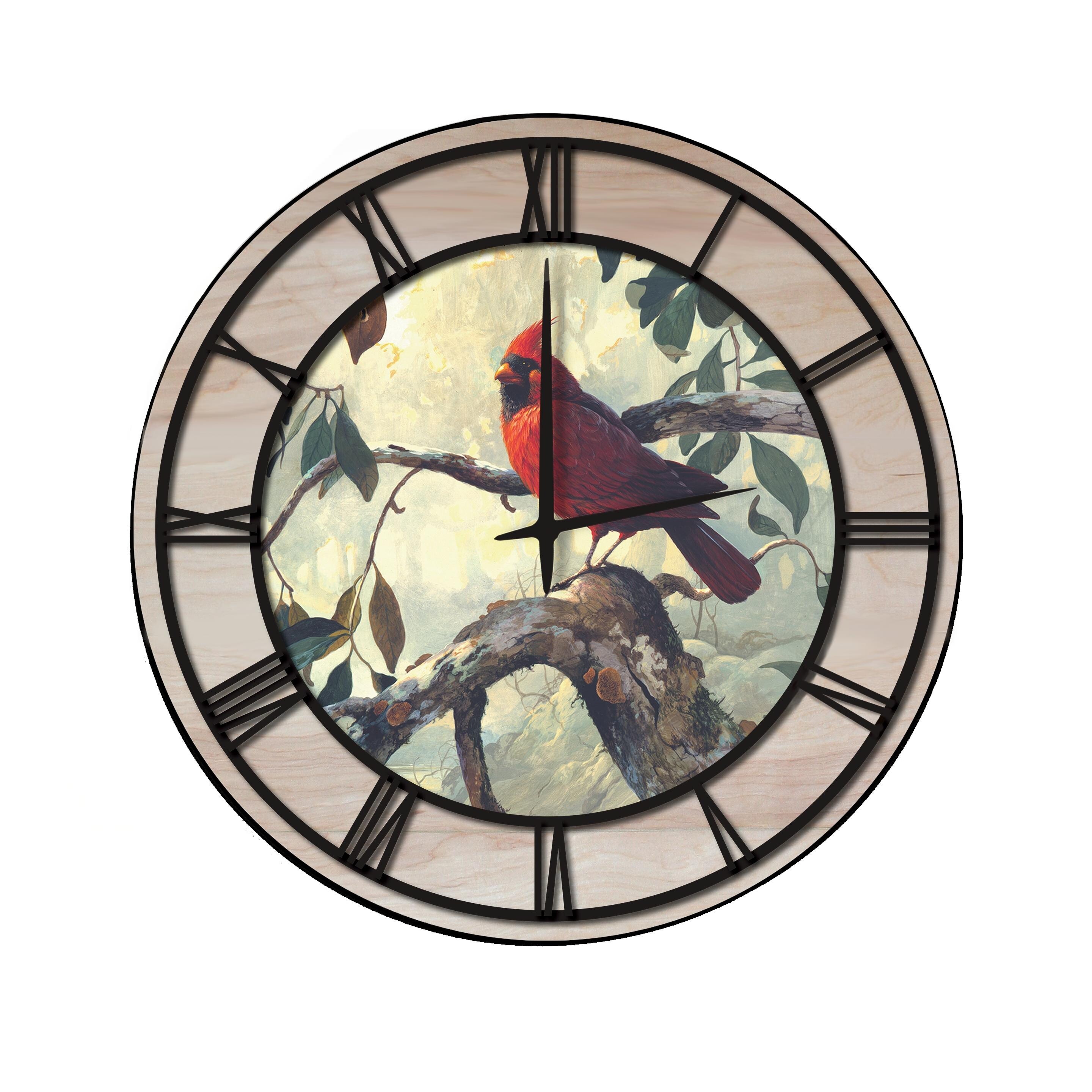 Wall Clock with Natural Woodgrain Accent - Sunrise at Narrows Creek - Black Numbers - 24" x 24"