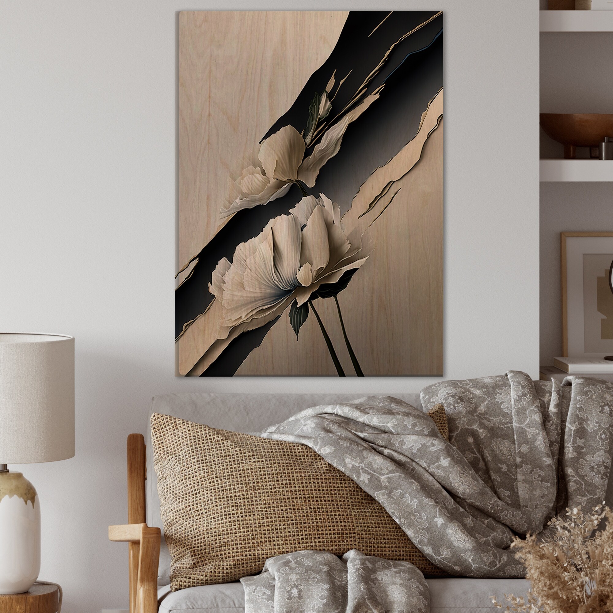 Designart 'Beige Peony Flowers Hyperrealistic I' Floral Peony Wood Wall Art - Natural Pine Wood
