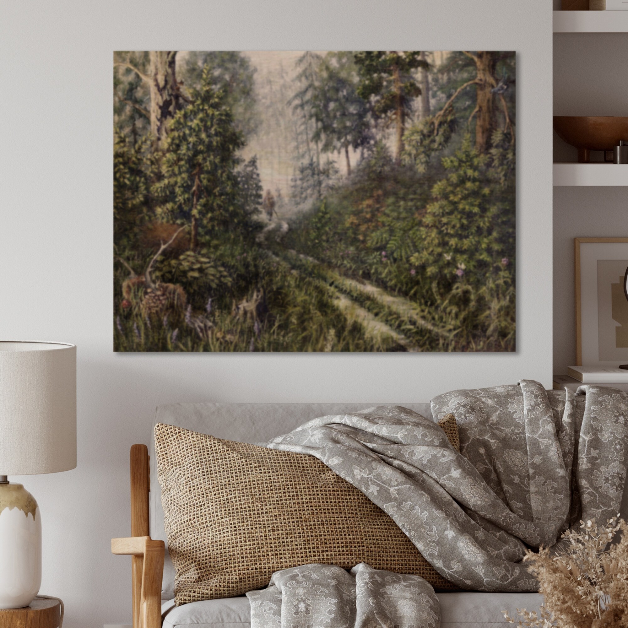 Designart 'Path To the Spring Enchanted Forest' Traditional Wood Wall Art - Natural Pine Wood