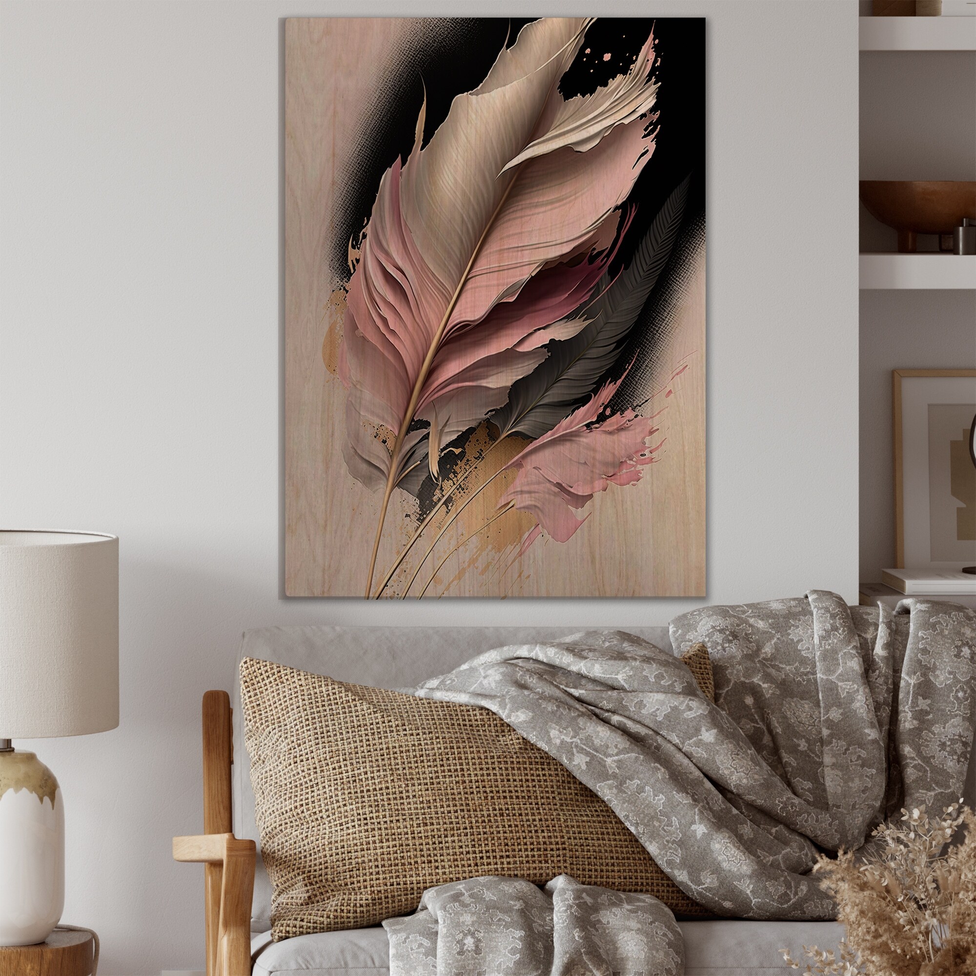 Designart 'Colourful Boho Feathers V' Bohemian & Eclectic Print on Natural Pine Wood