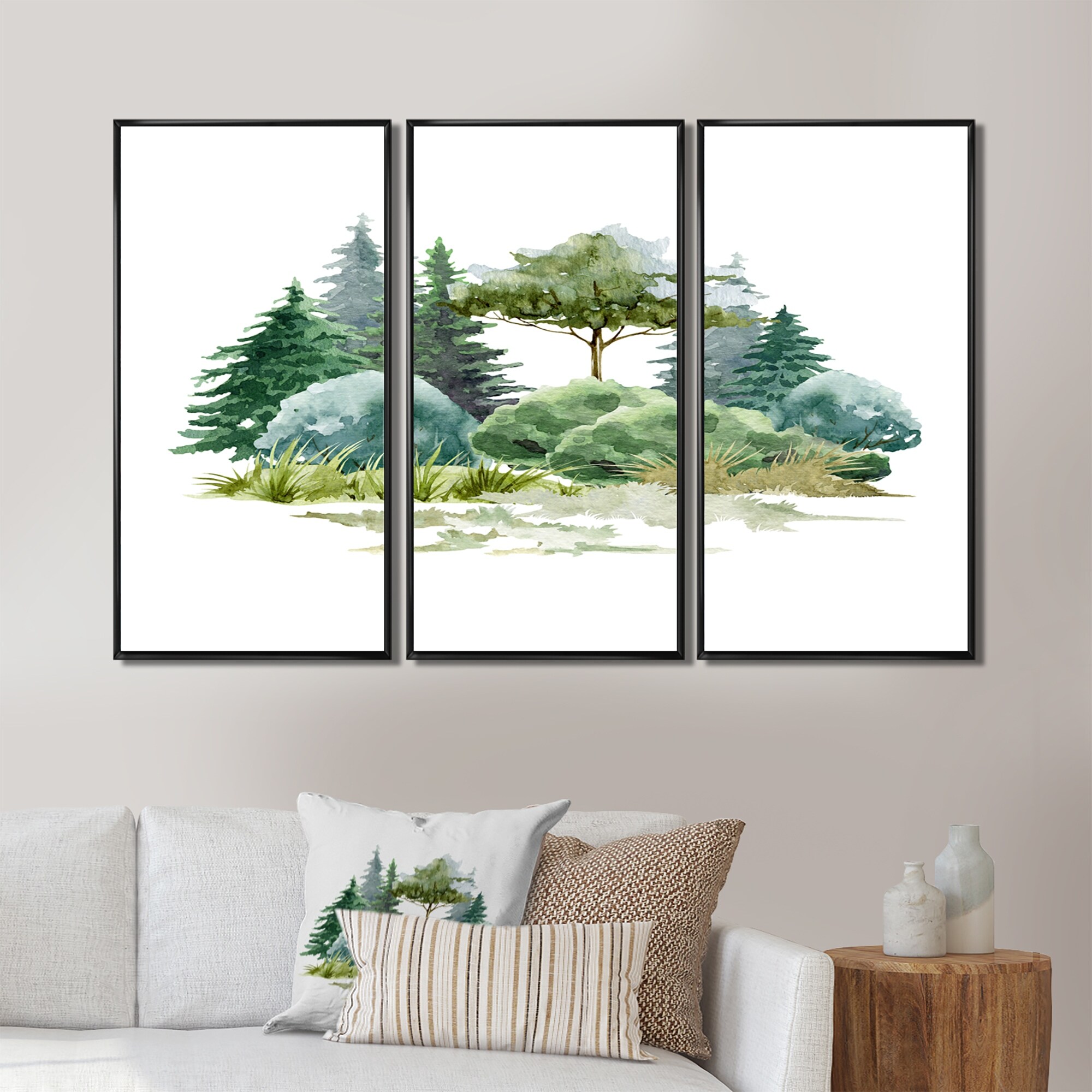 Designart "Nature Forest Lawn, Trees Bush Glade, Grass II" Country Framed Wall Decor Set of 3 - 4 Colors of Frames