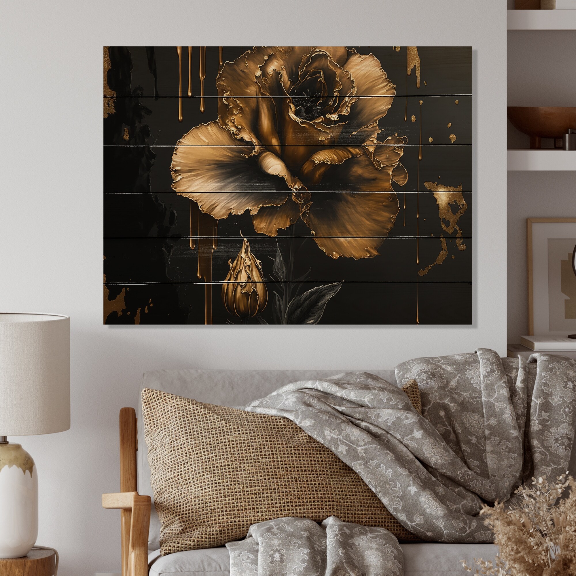 Designart 'Black And Gold Gladiolus III' Floral Gladiolus Wood Wall Art - Natural Pine Wood