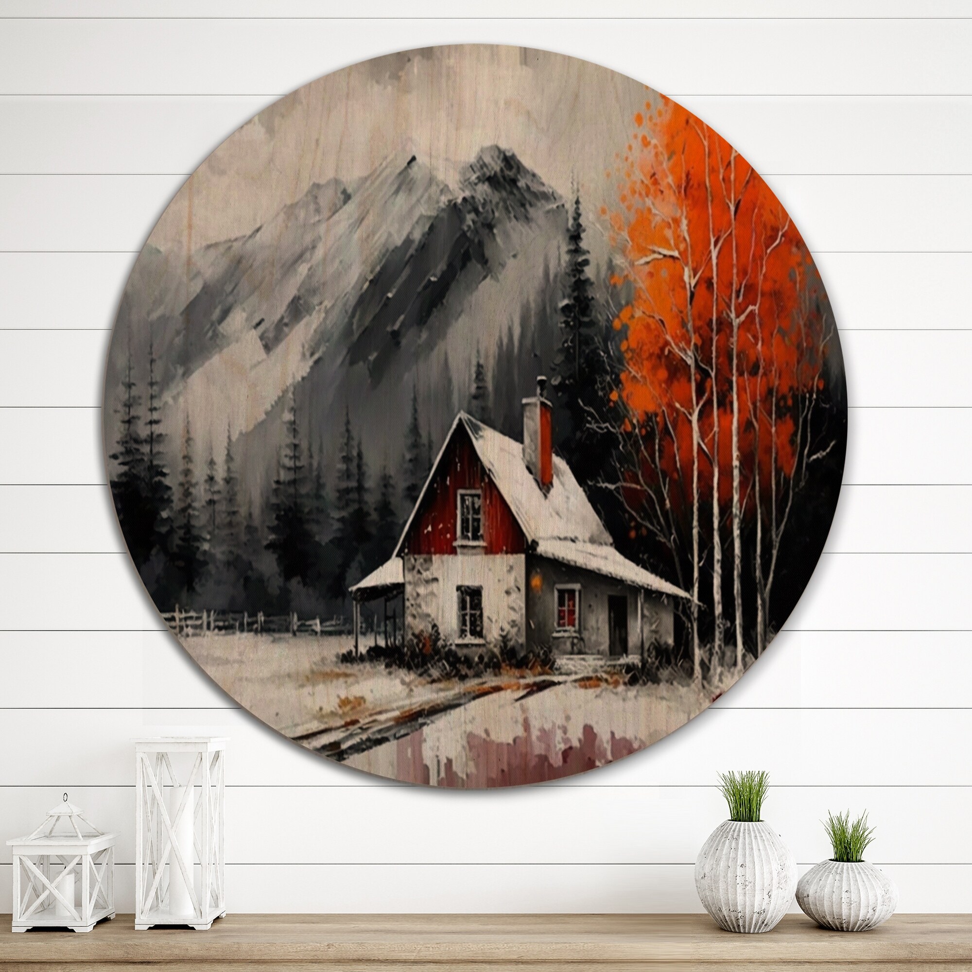 Designart "Cabin In the Woods in Winter VI" Traditional Wood Wall Art - Natural Pine Wood