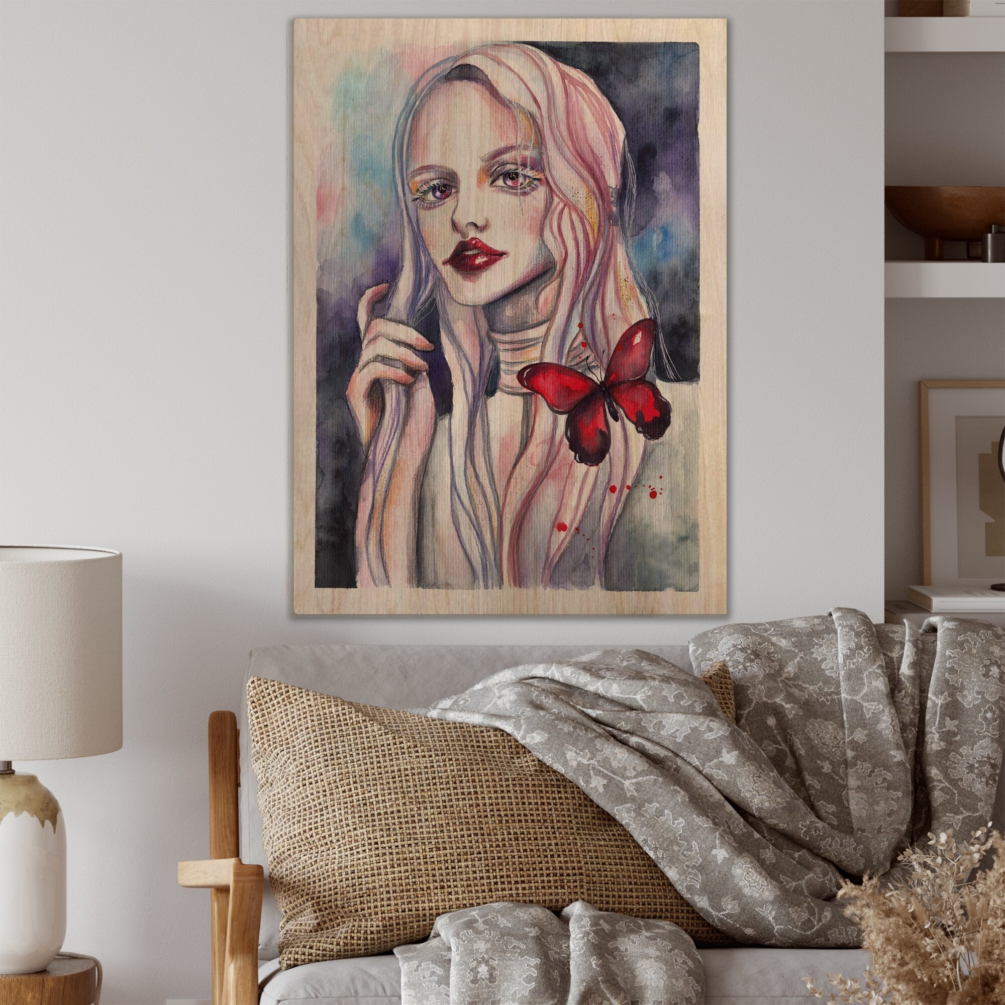 Designart 'Portrait Of a Grunge Girl V' Vintage Wood Wall Art Panels - Natural Pine Wood