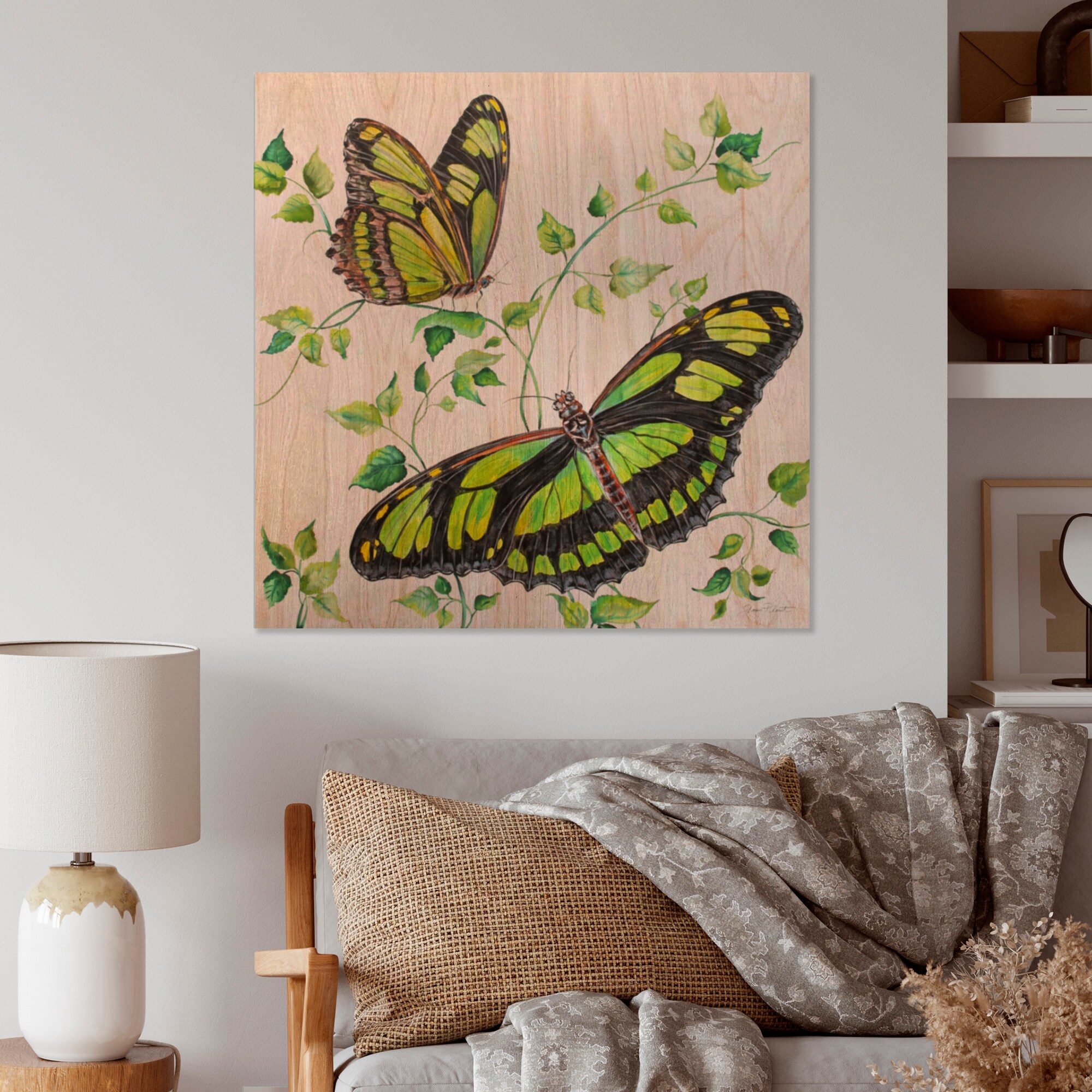 Designart 'Summertime Butterflies D' Vintage Wood Wall Art Panels - Natural Pine Wood