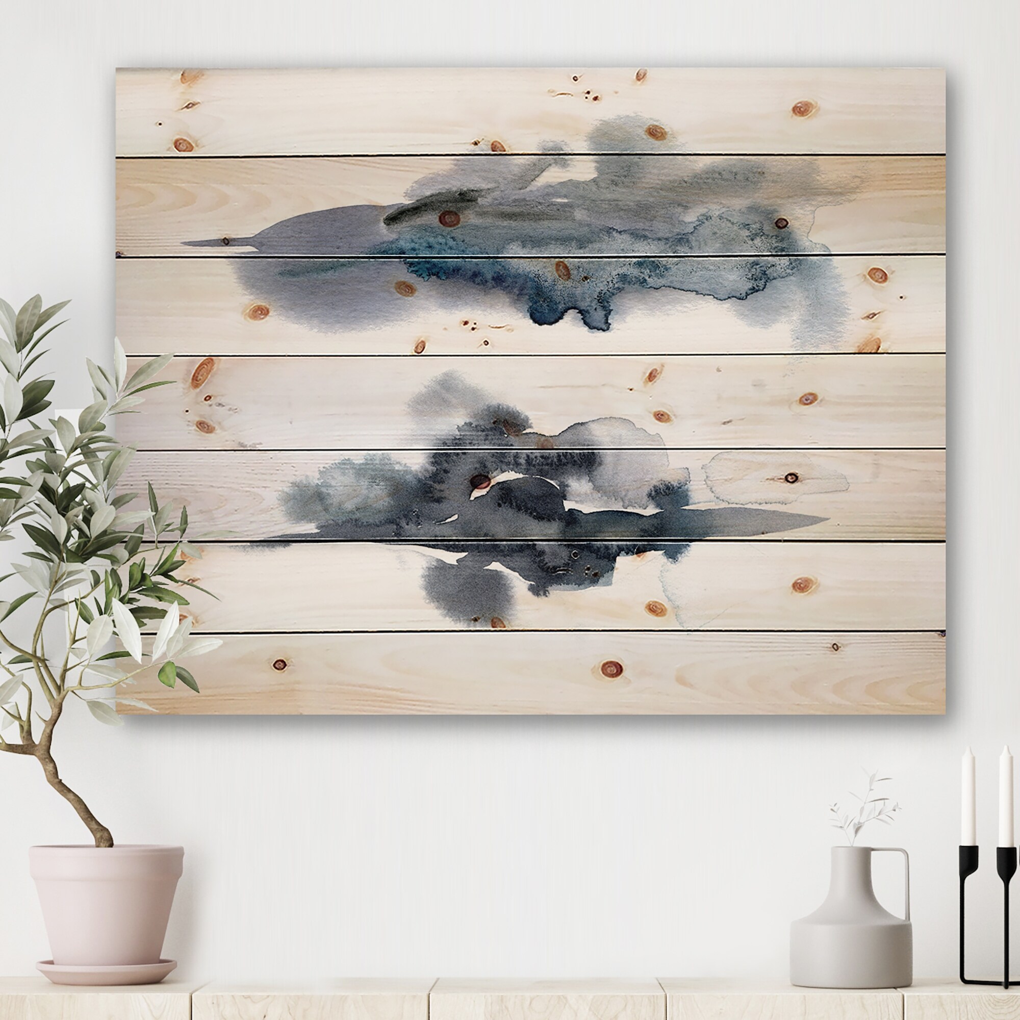 Designart 'Abstract Of Dark Blue Clouds II' Modern Print on Natural Pine Wood