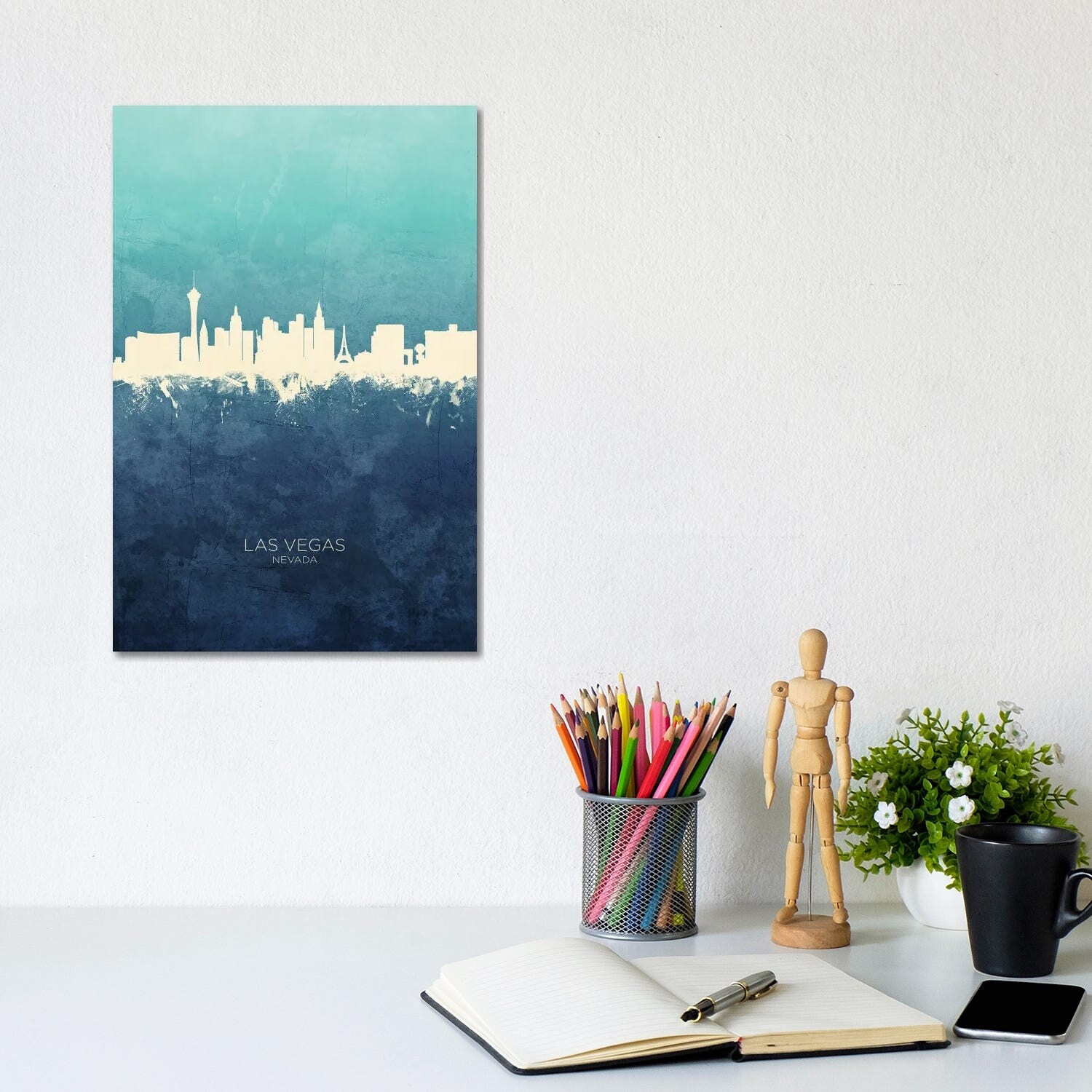 iCanvas "Las Vegas Nevada Skyline Navy Cyan" by Michael Tompsett Canvas Print