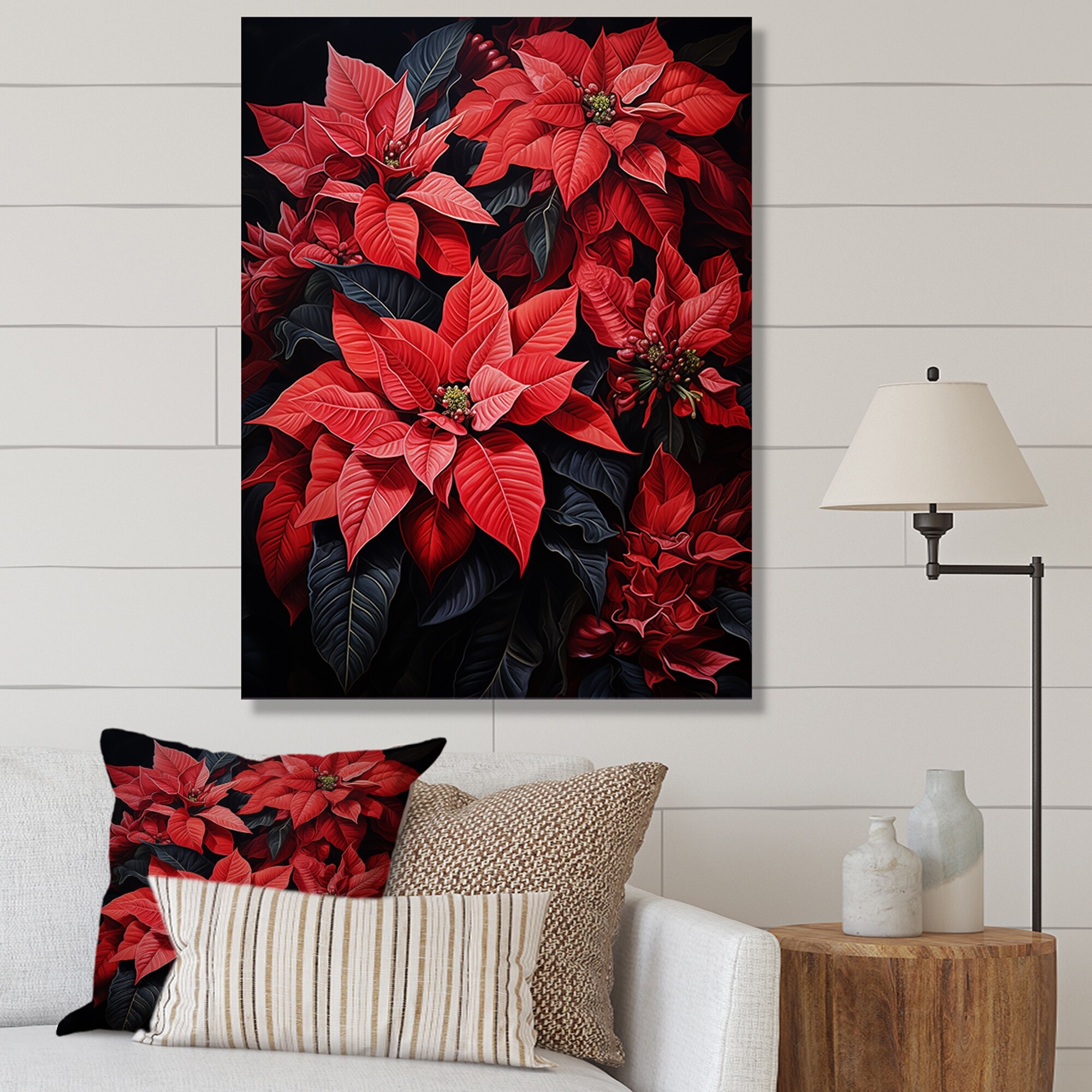 Designart "Poinsettia Flower Noir I" Poinsettias Wall Art Living Room