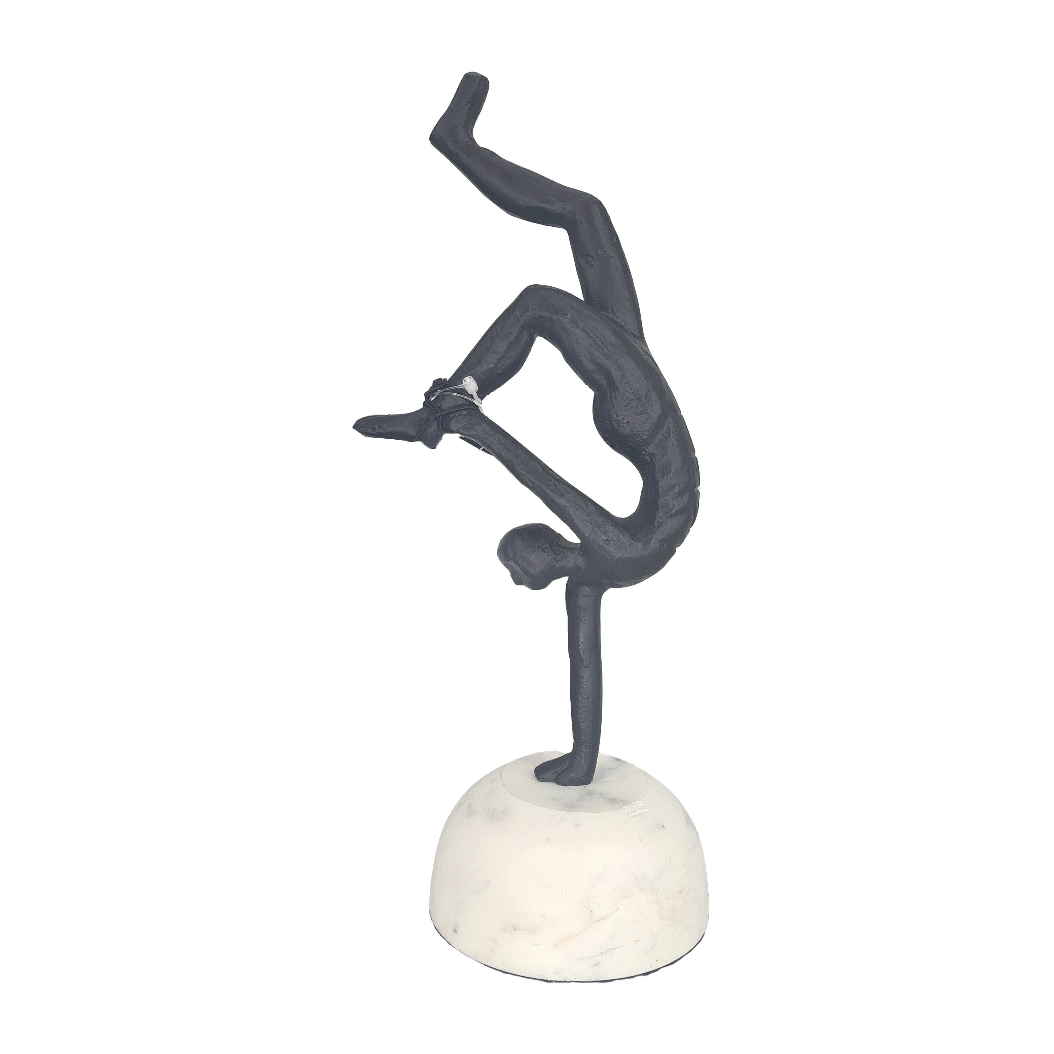 Sagebrook Home 11"H, Metal, Man on Marble Ball, Black, Novelty, 6"H, Solid Color - 5.5" x 4.75" x 6.0"