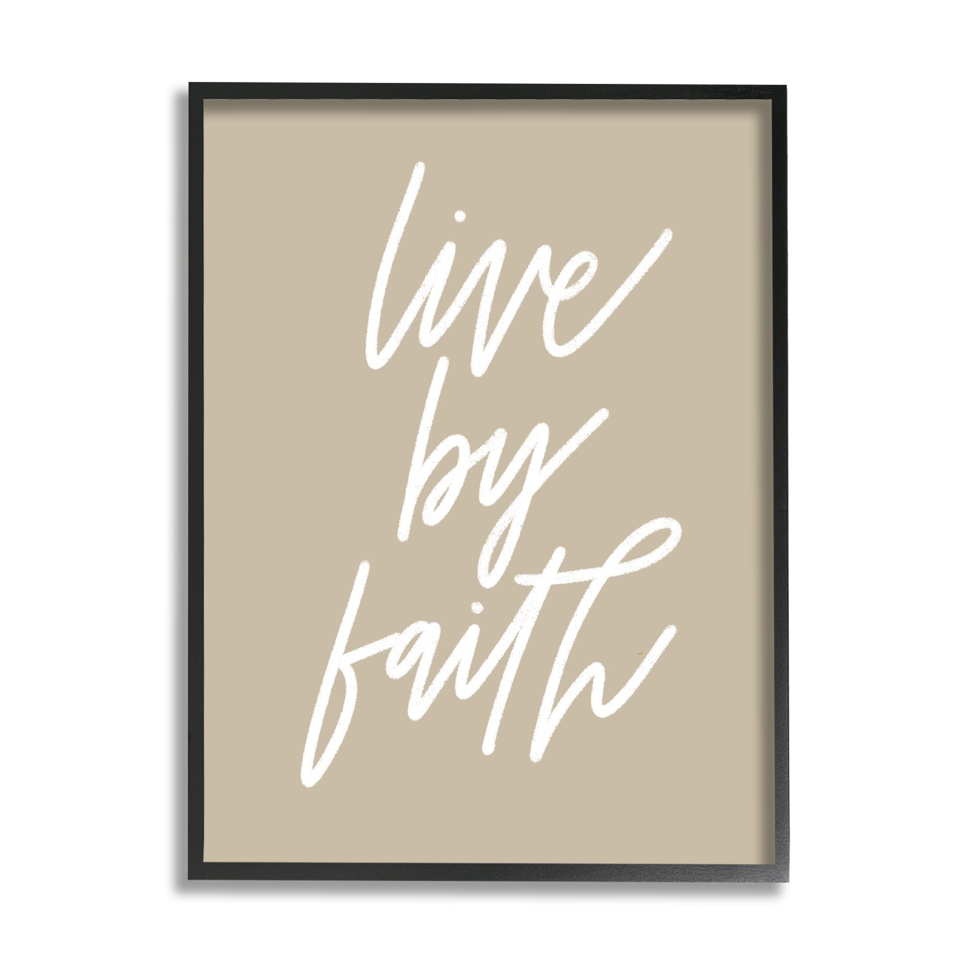 Stupell Industries Live By Faith Minimalistic Religious Novelty Calligraphy Sign Framed Wall Art, Design by Doodles.Ink. - Brown