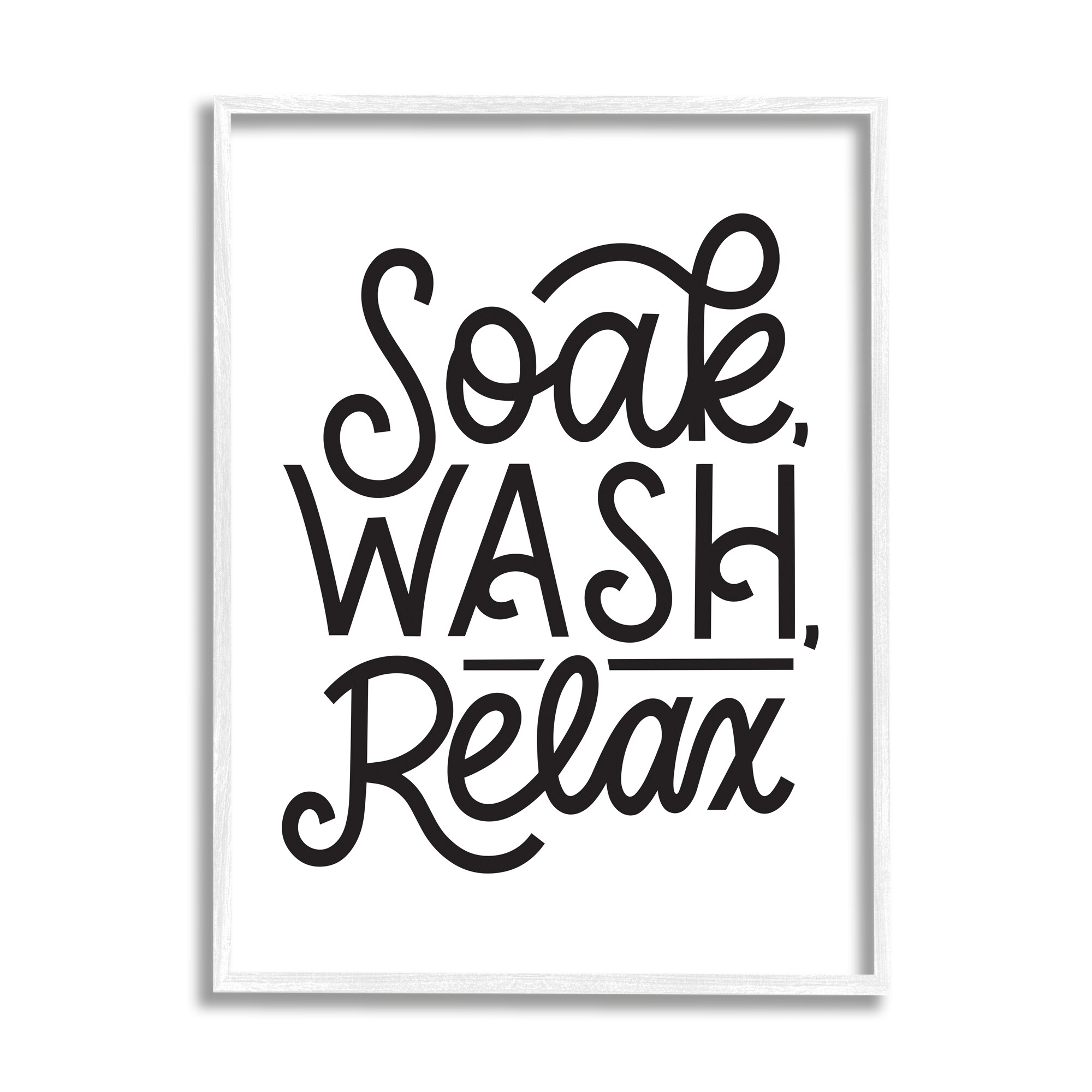 Stupell Industries Soak Relax Bathroom Bold Novelty Calligraphy Sign Framed Wall Art, Design by Jalynn Heerdt - White