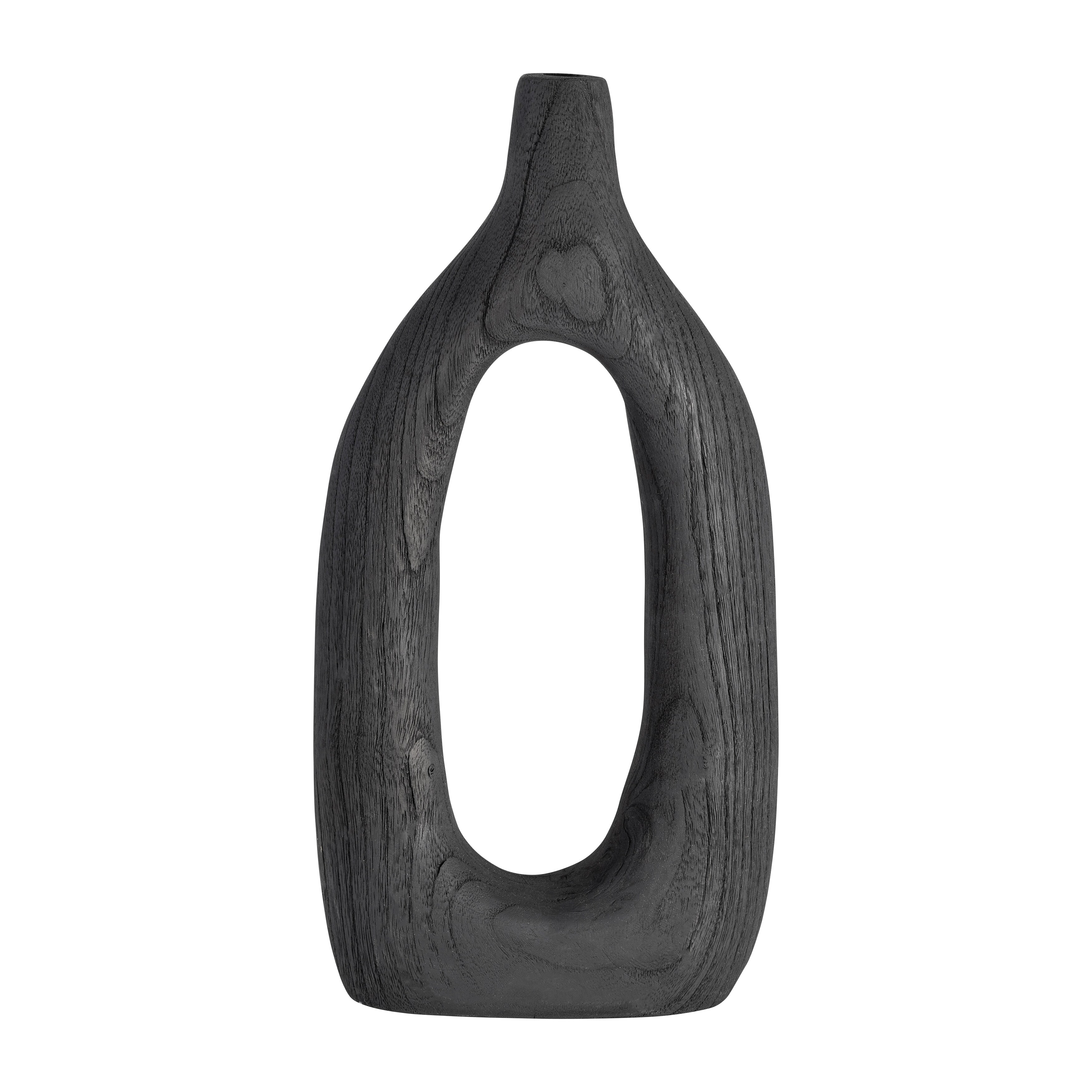 Sagebrook Home Wood, 14"H Cutout Vase, Black, Novelty, Paulownia Wood, Contemporary, 13.8"H, Solid Color