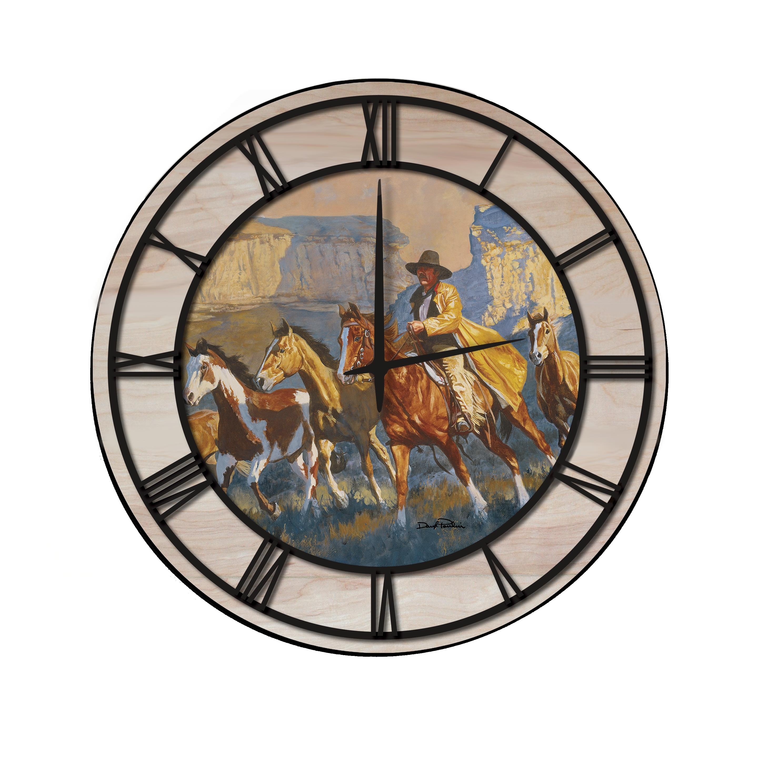 Wall Clock with Natural Woodgrain Accent - A Cowboy Day - Black Numbers - 24" x 24"