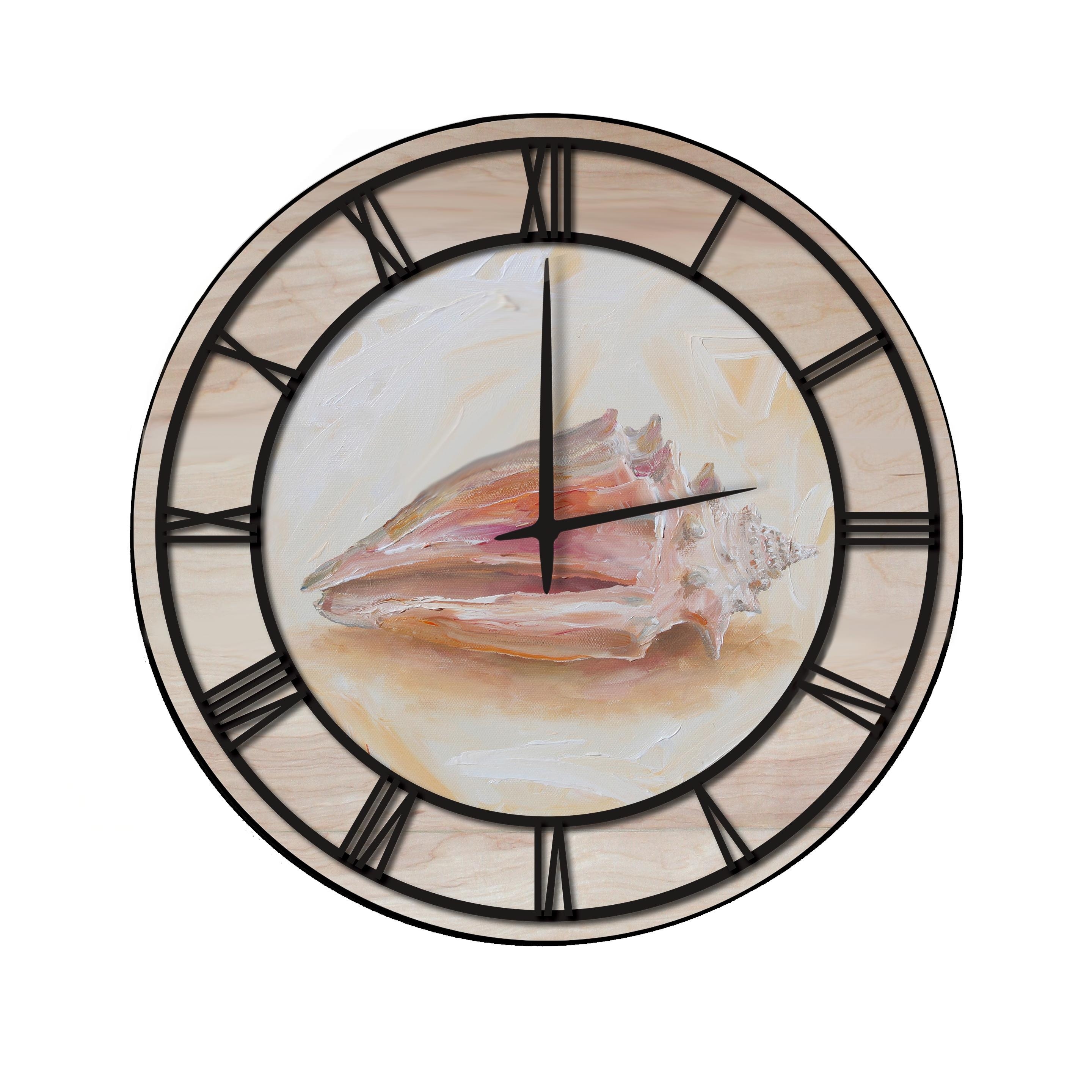 Wall Clock with Natural Woodgrain Accent - Sea Shell #2 - Black Numbers - 24" x 24"