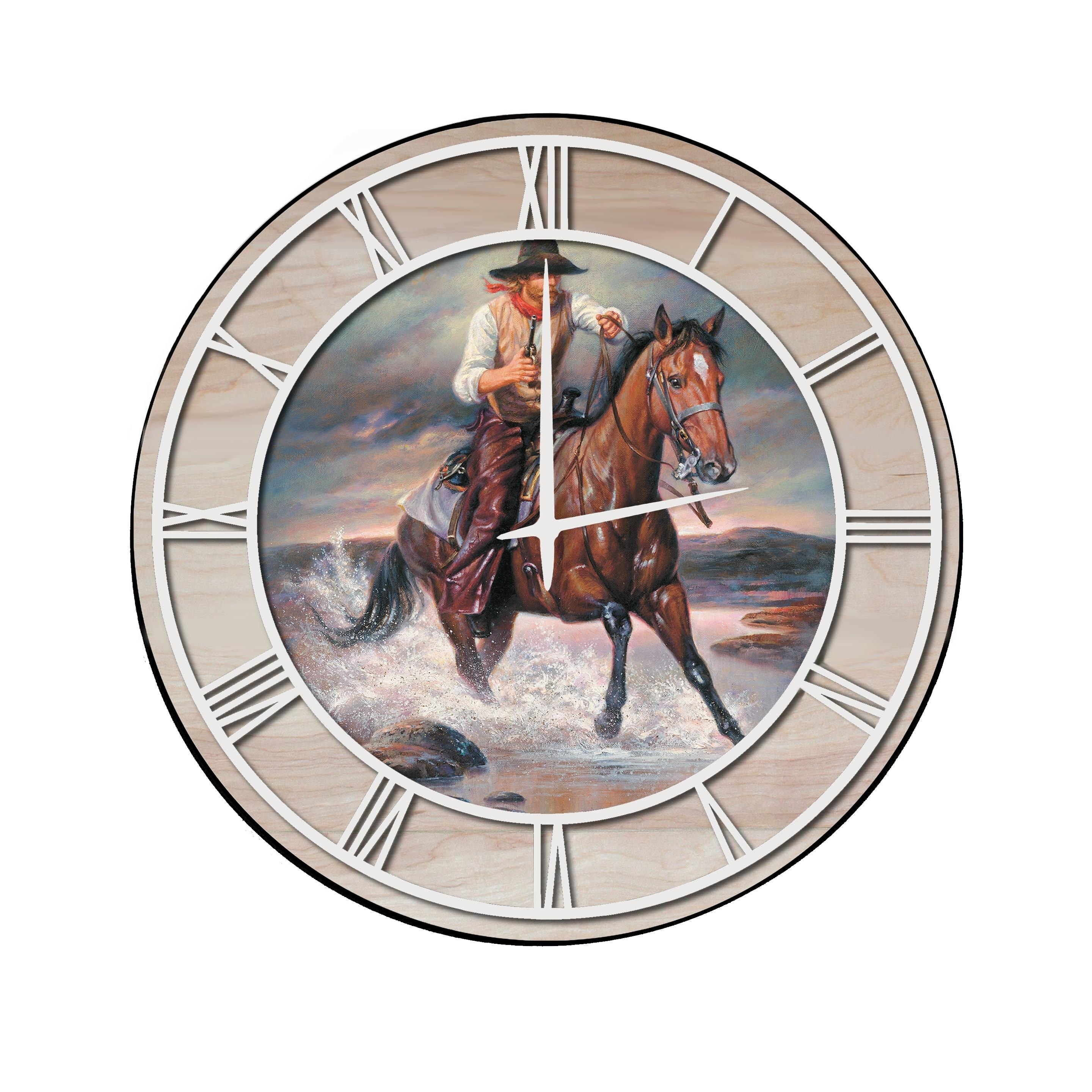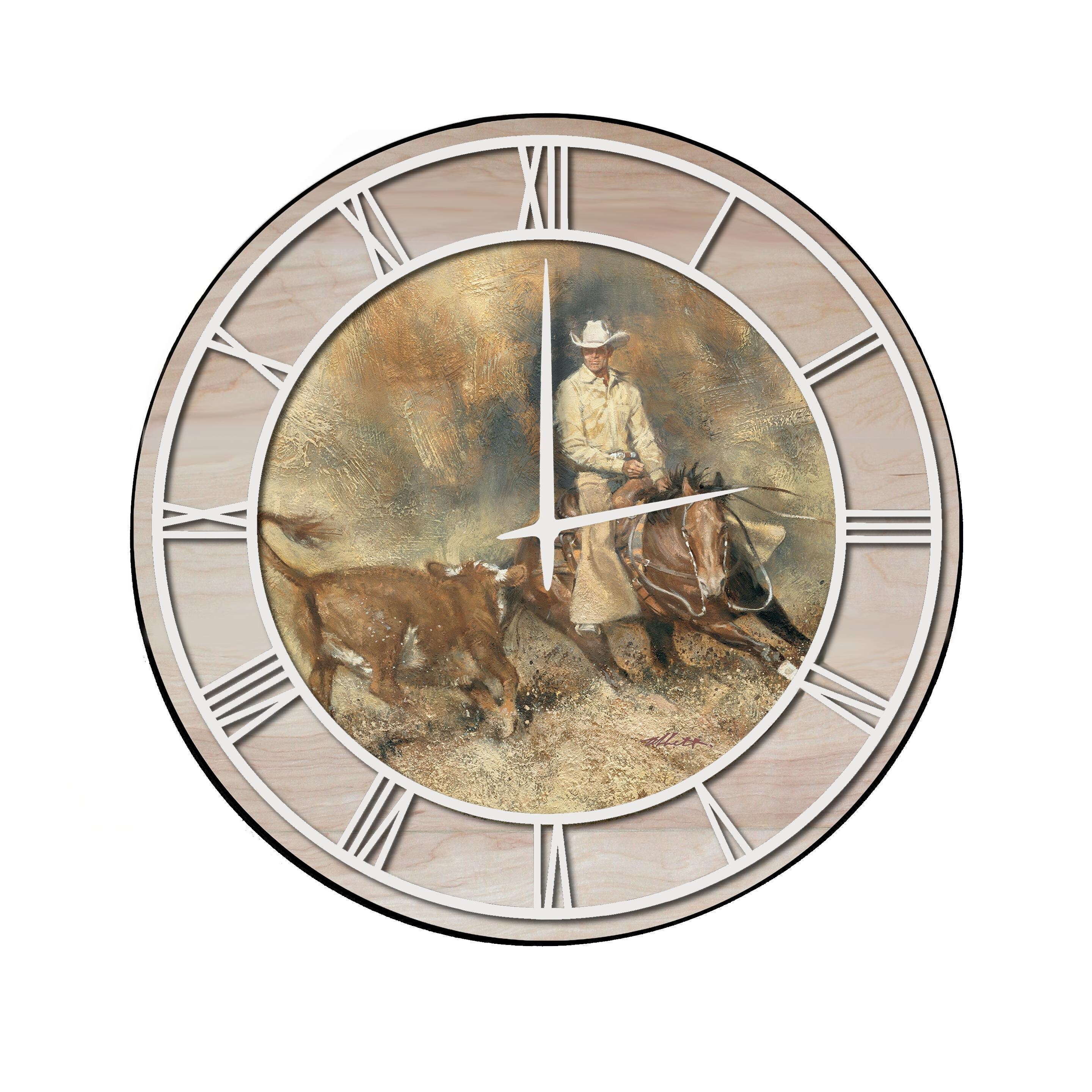 Wall Clock with Natural Woodgrain Accent - A Cowboy Day - White Numbers - 24" x 24"