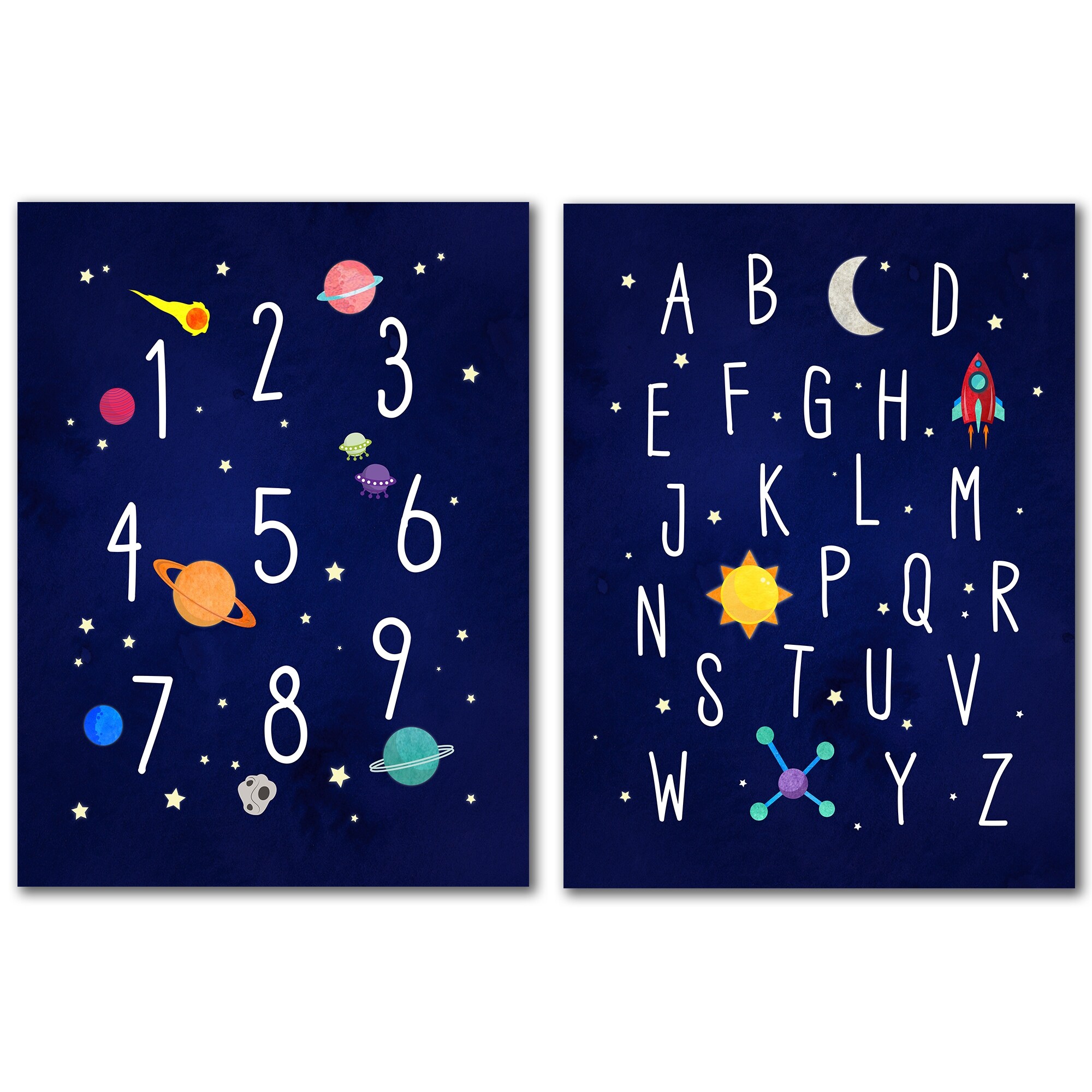 Space Numbers by Elena David 2 Piece Wrapped Canvas Wall Art Set