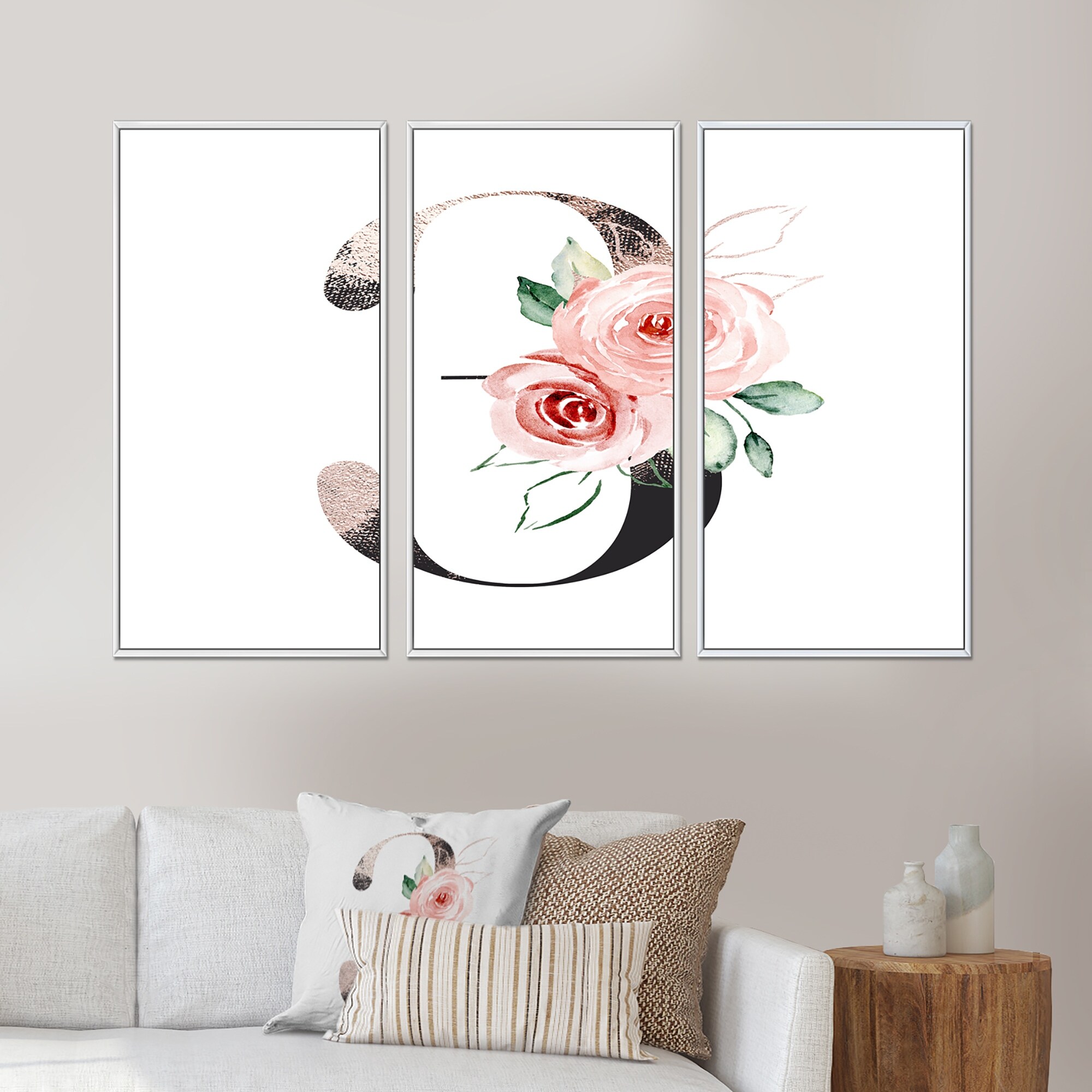 Designart "Floral Art Design With Number Three I" Traditional Framed Art Set of 3 - 4 Colors of Frames