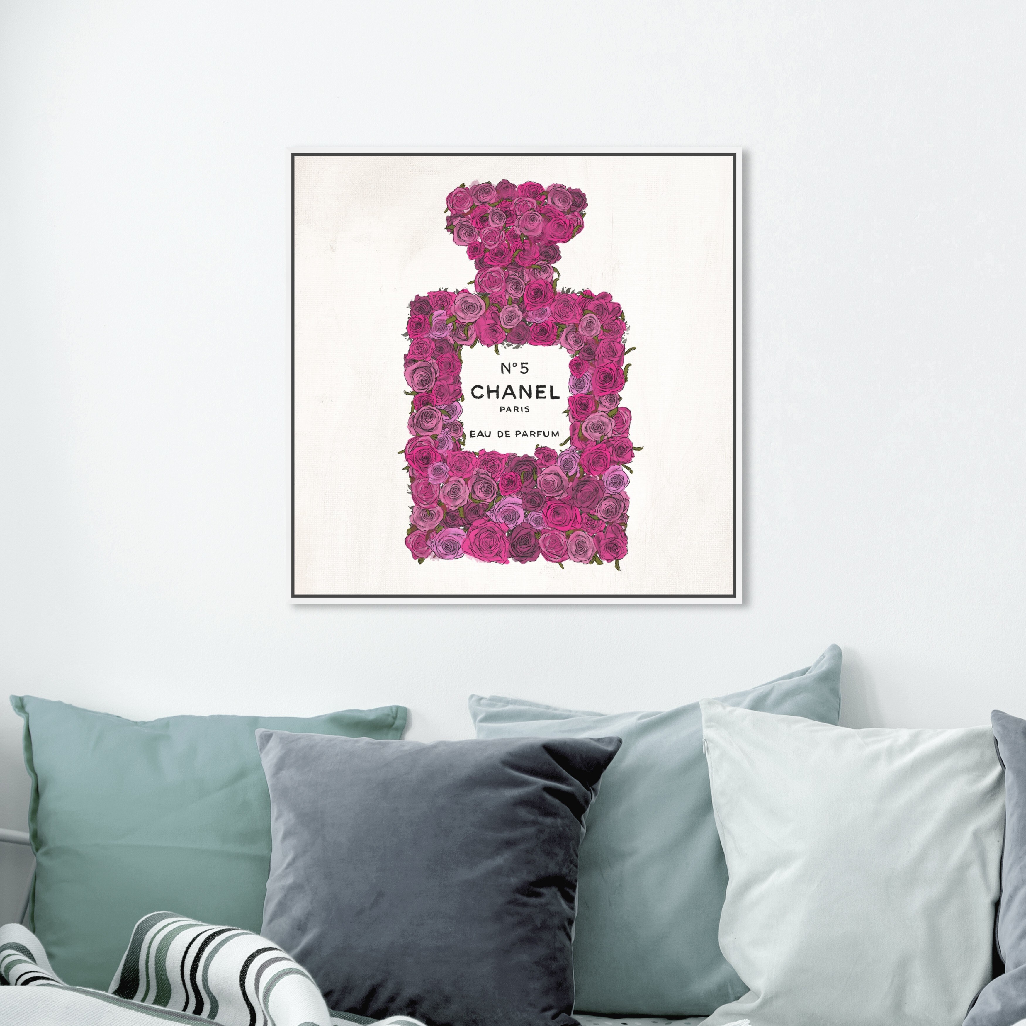 Oliver Gal Fashion and Glam Wall Art Framed Canvas Prints 'Number 5 Rose' Perfumes - Pink, White