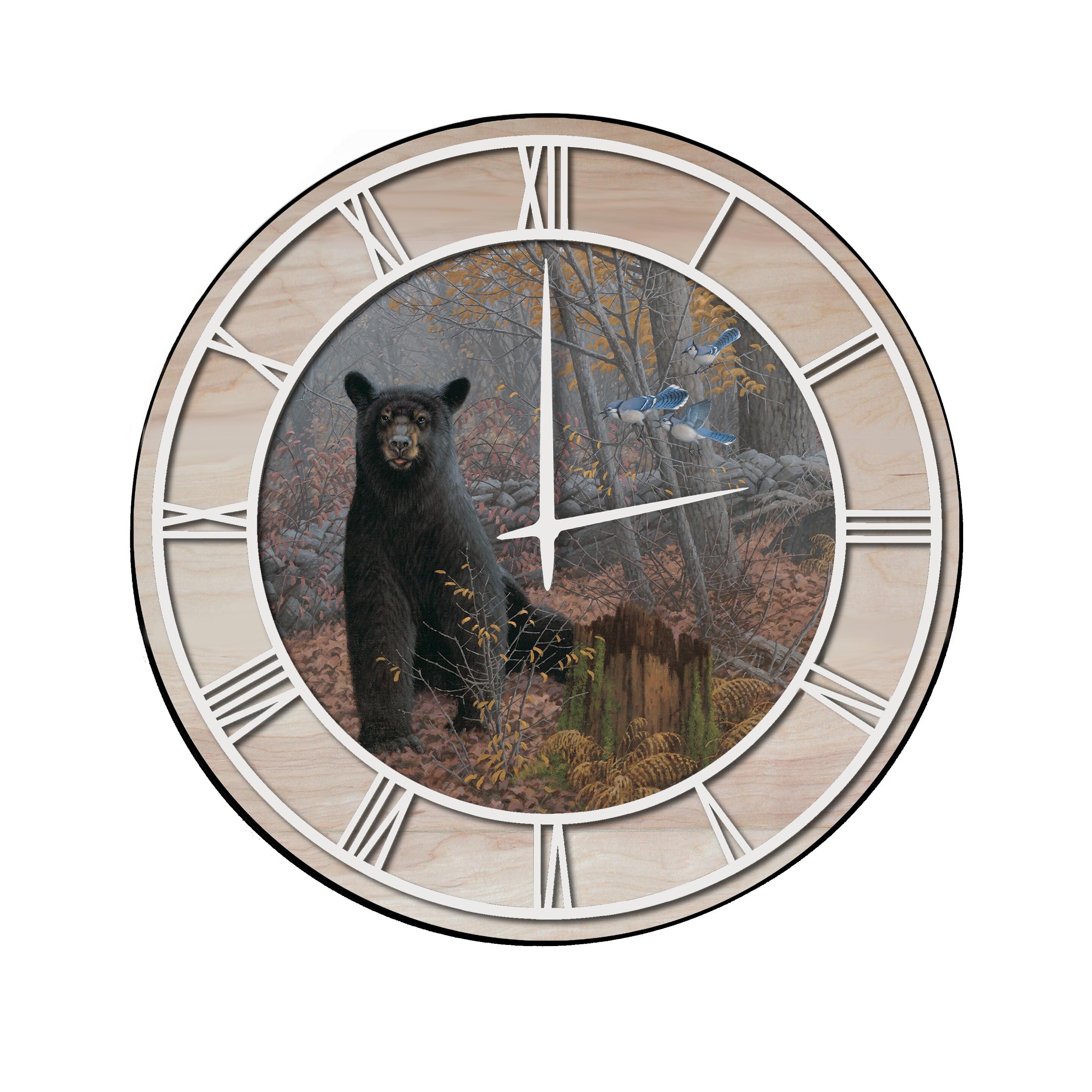 Wall Clock with Full Coverage Art - Streamside Bear - Black Numbers - 24" x 24"