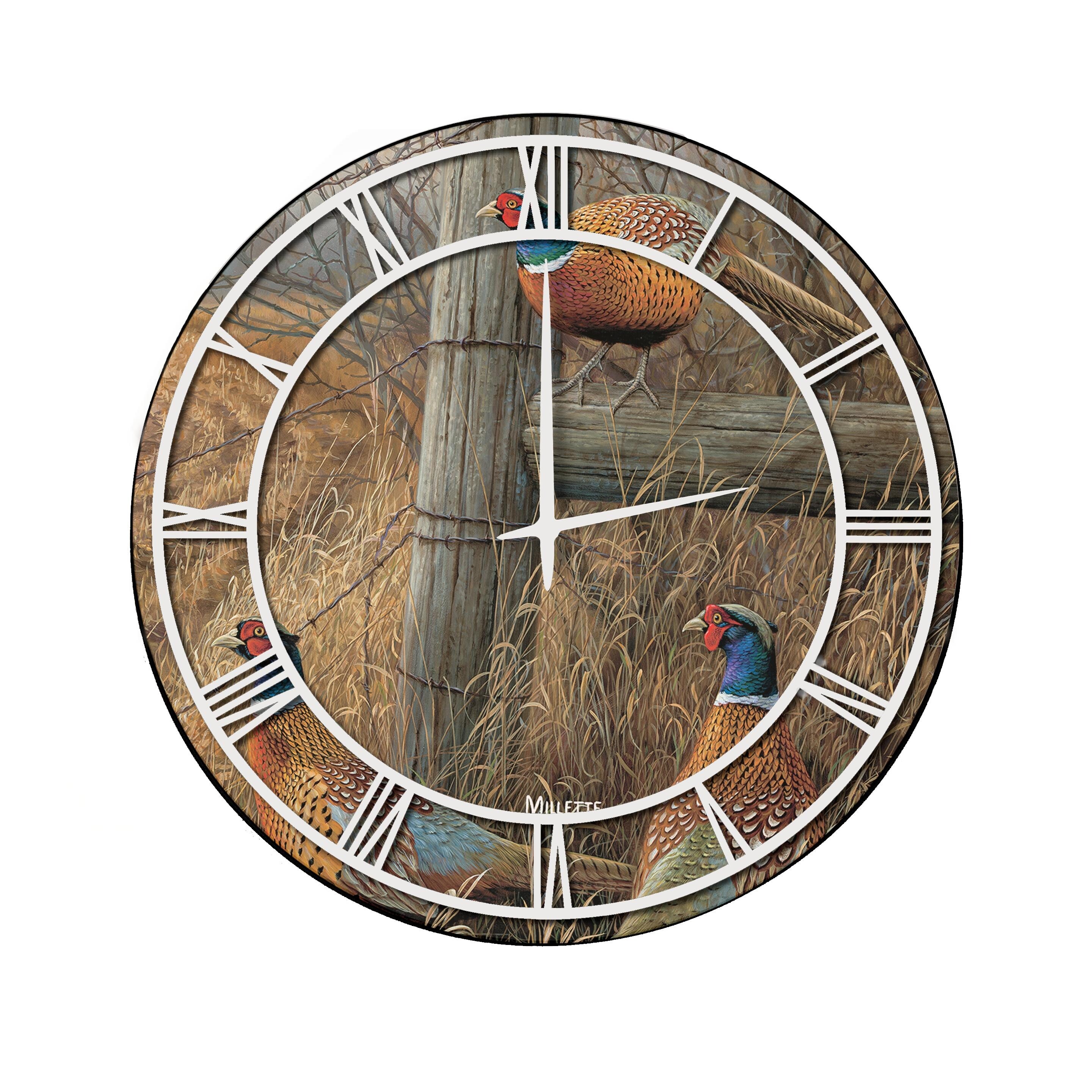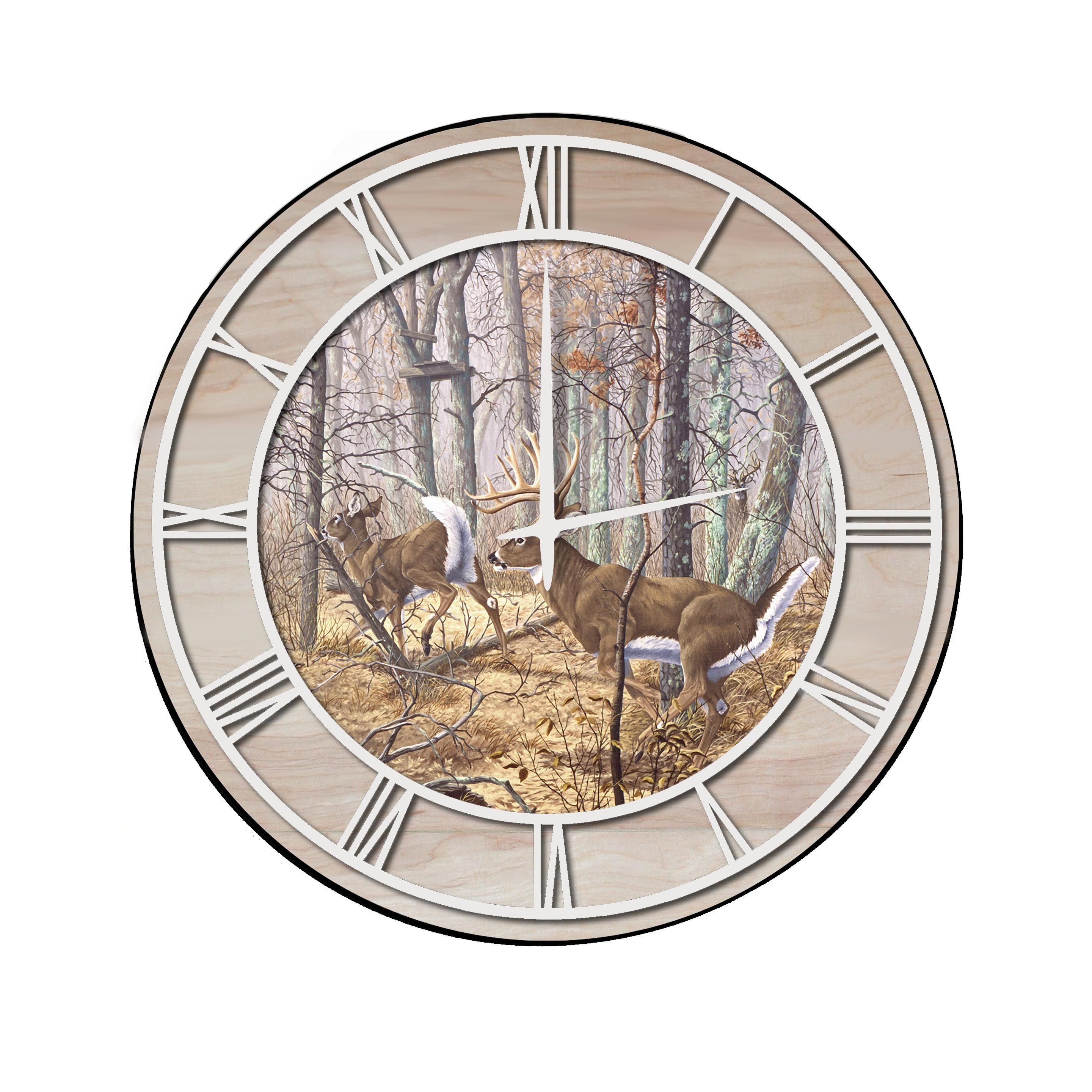 Wall Clock with Natural Woodgrain Accent - Autumn Pursuit - White Numbers - 24" x 24"