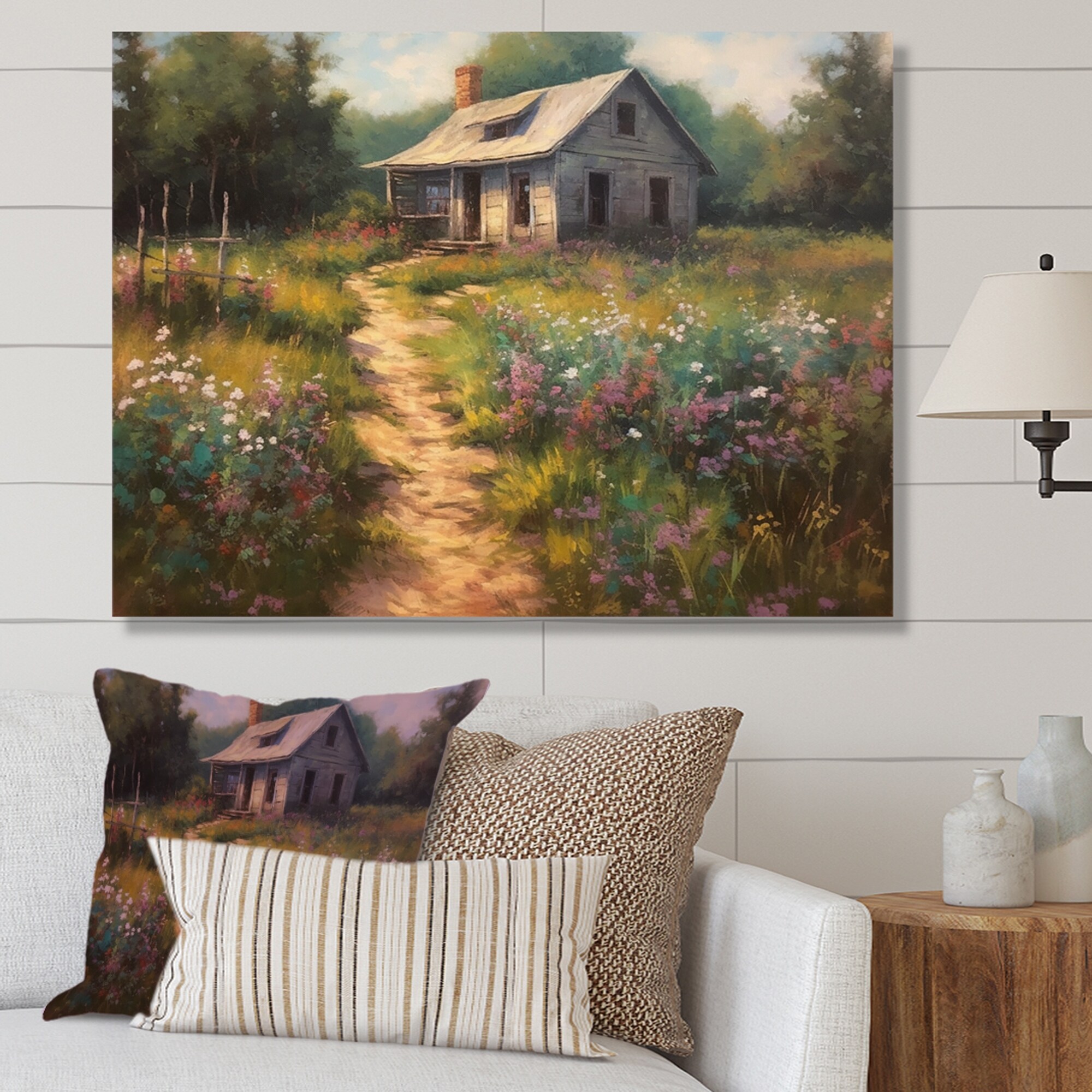 Designart "Quaint Cottage And Garden Oasis Ii" Cottage Landscape Canvas Wall Art