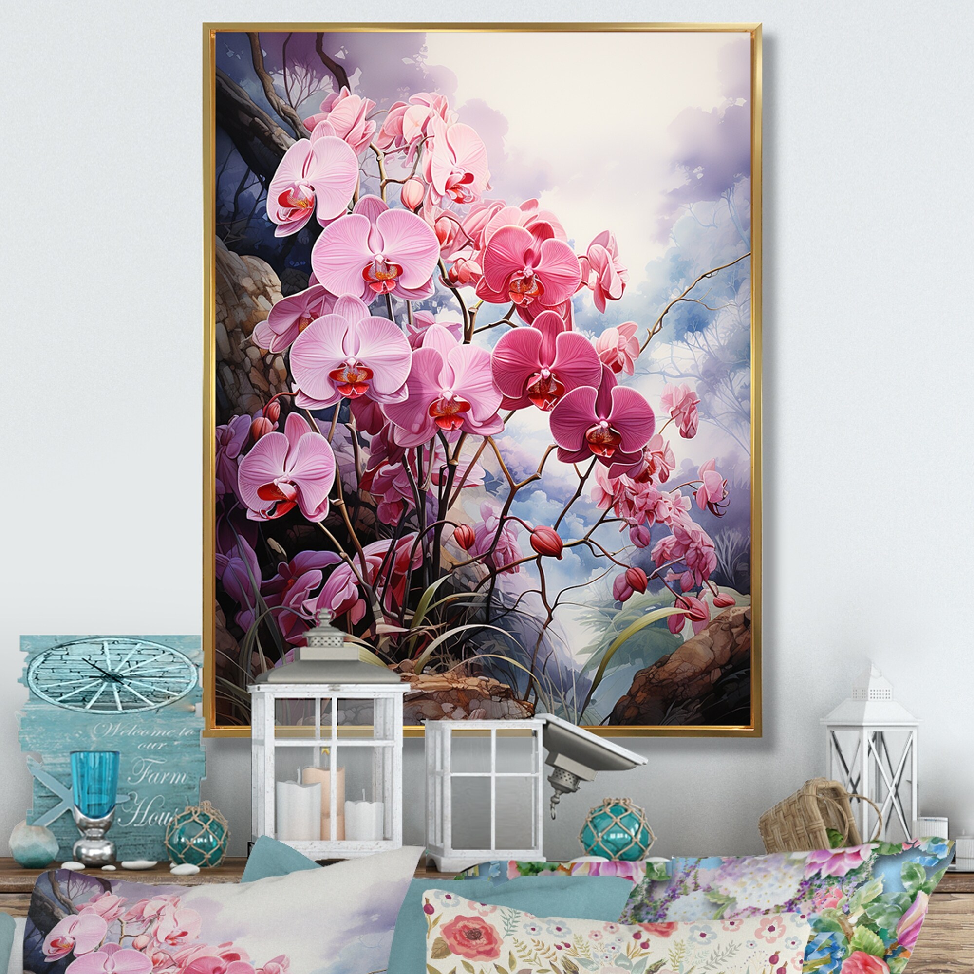 Designart "Meadow Delicate Orchid Oasis II" Meadow Framed Canvas Wall Art