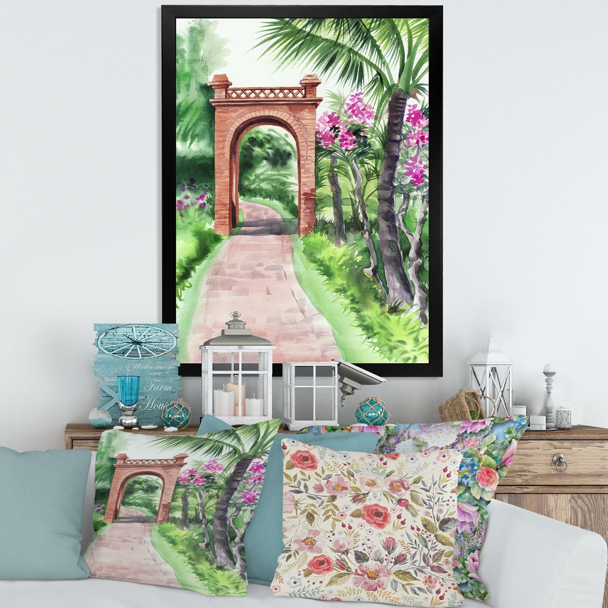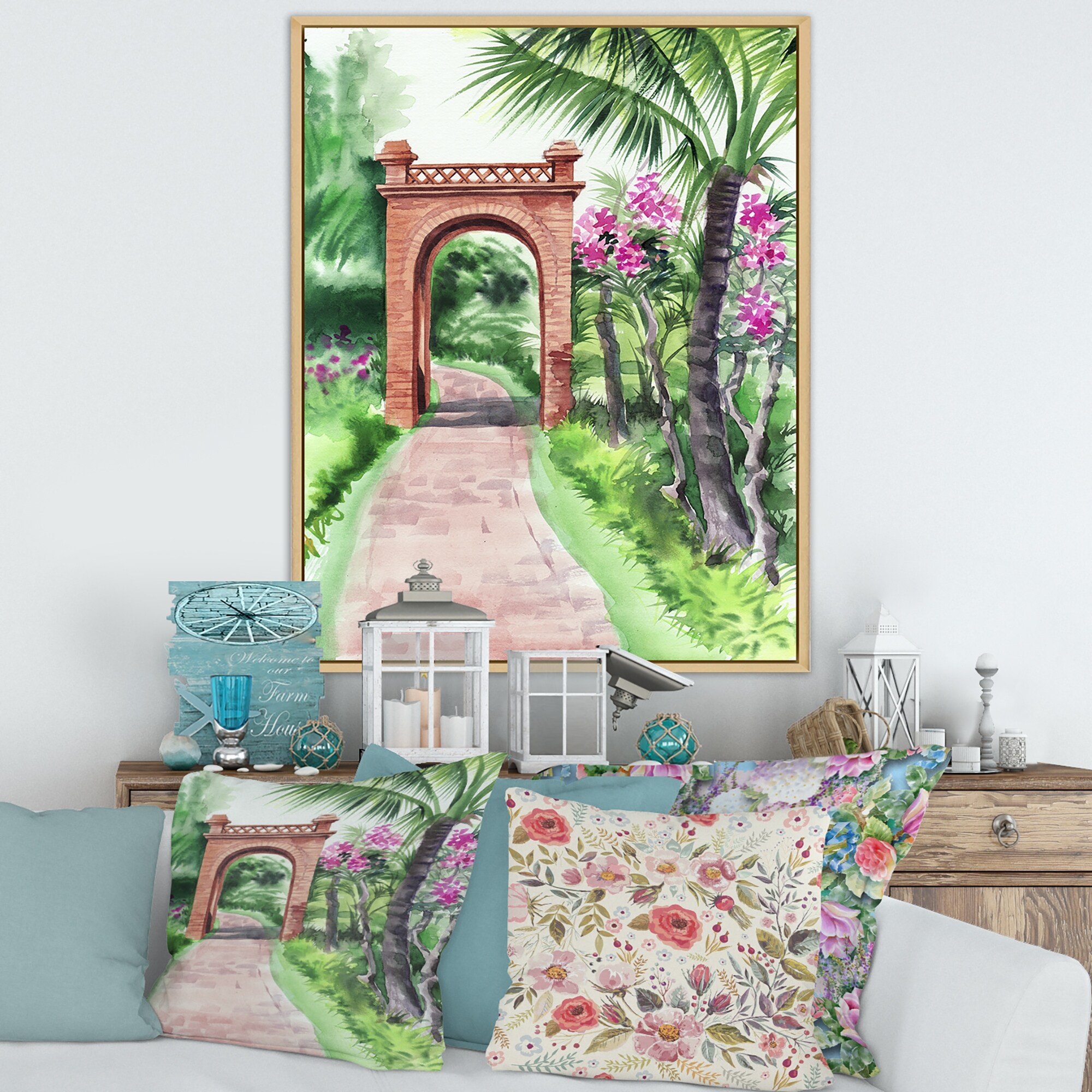 Designart "Traditional Gate in Tropical Oasis" Tropical Framed Canvas Wall Art Print