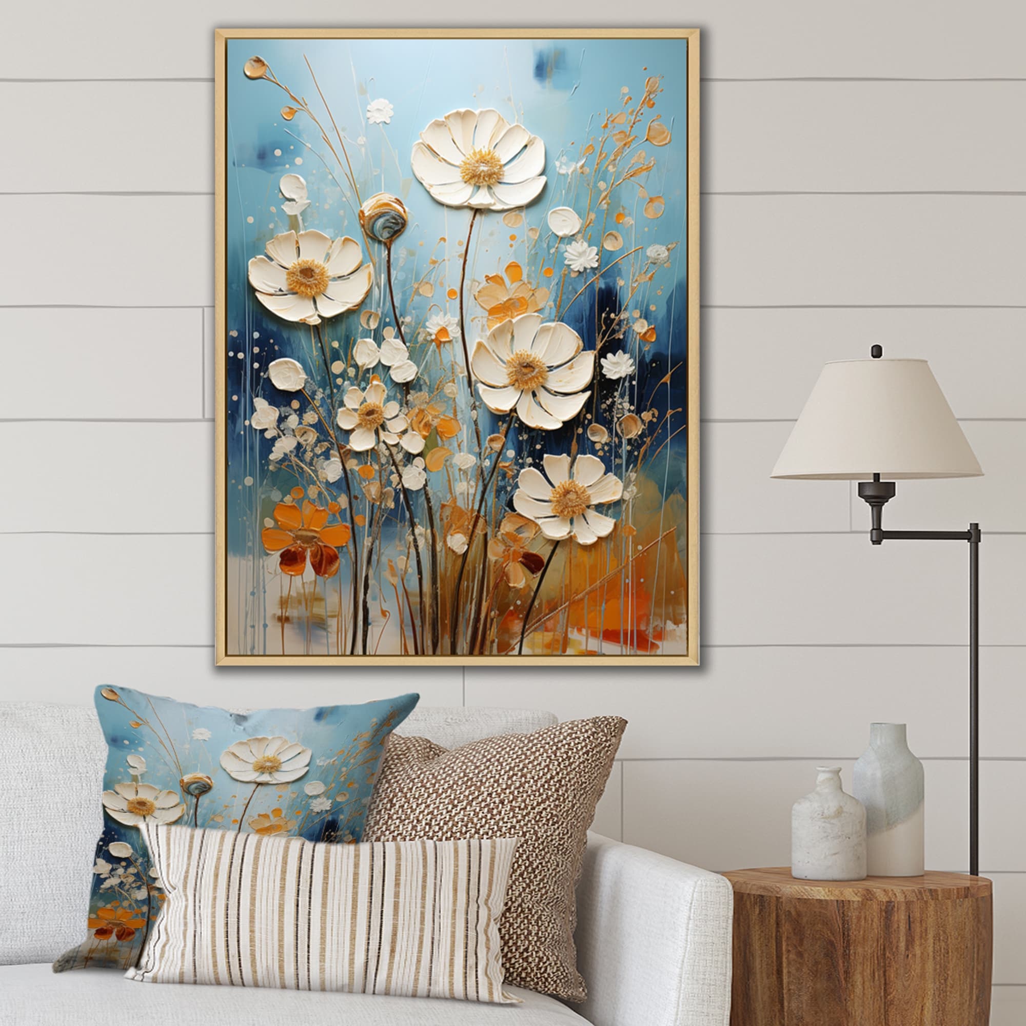 Designart "White Wildflowers Serene Oasis" Wildflowers Framed Canvas Print
