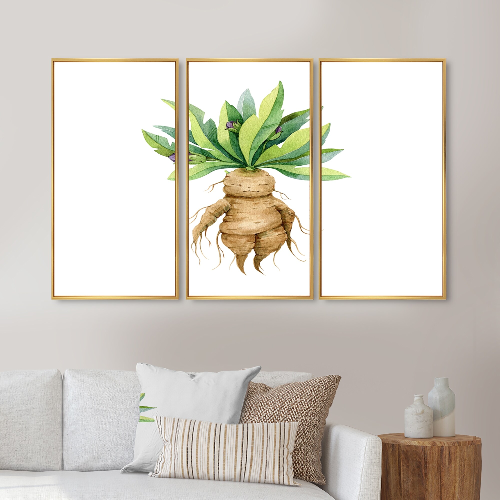 Designart "Mandragora Plant" Traditional Framed Canvas Wall Art Set of 3 - 4 Colors of Frames