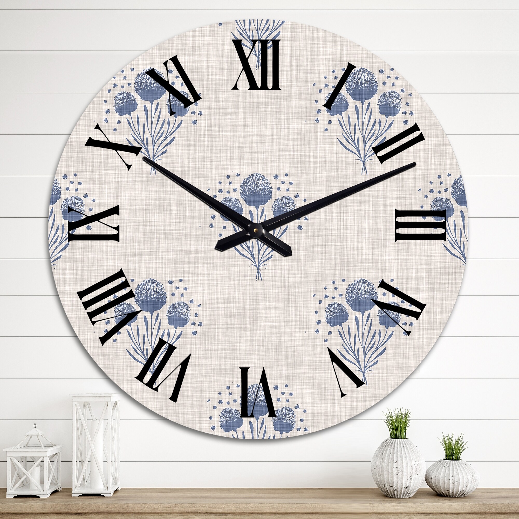 Designart 'Vintage Blue Farmhouse Flower IX' Patterned wall clock
