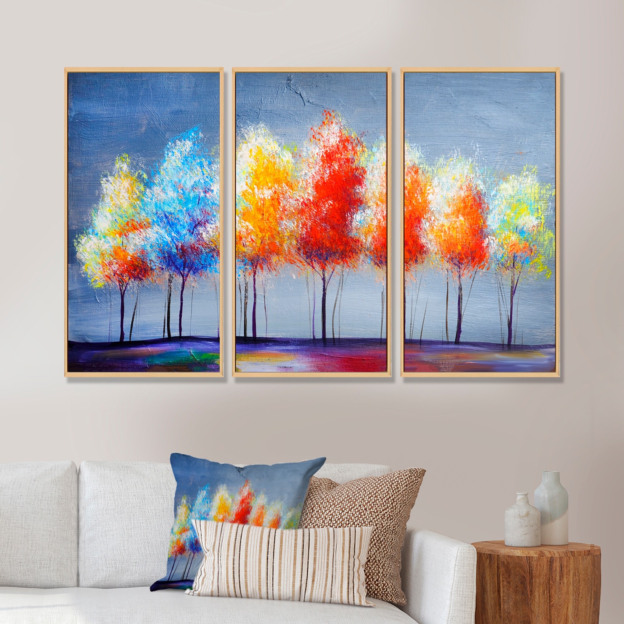 Designart "Autumn Colored Forest Treescape XXXI" Farmhouse Framed Wall Art Set of 3 - 4 Colors of Frames