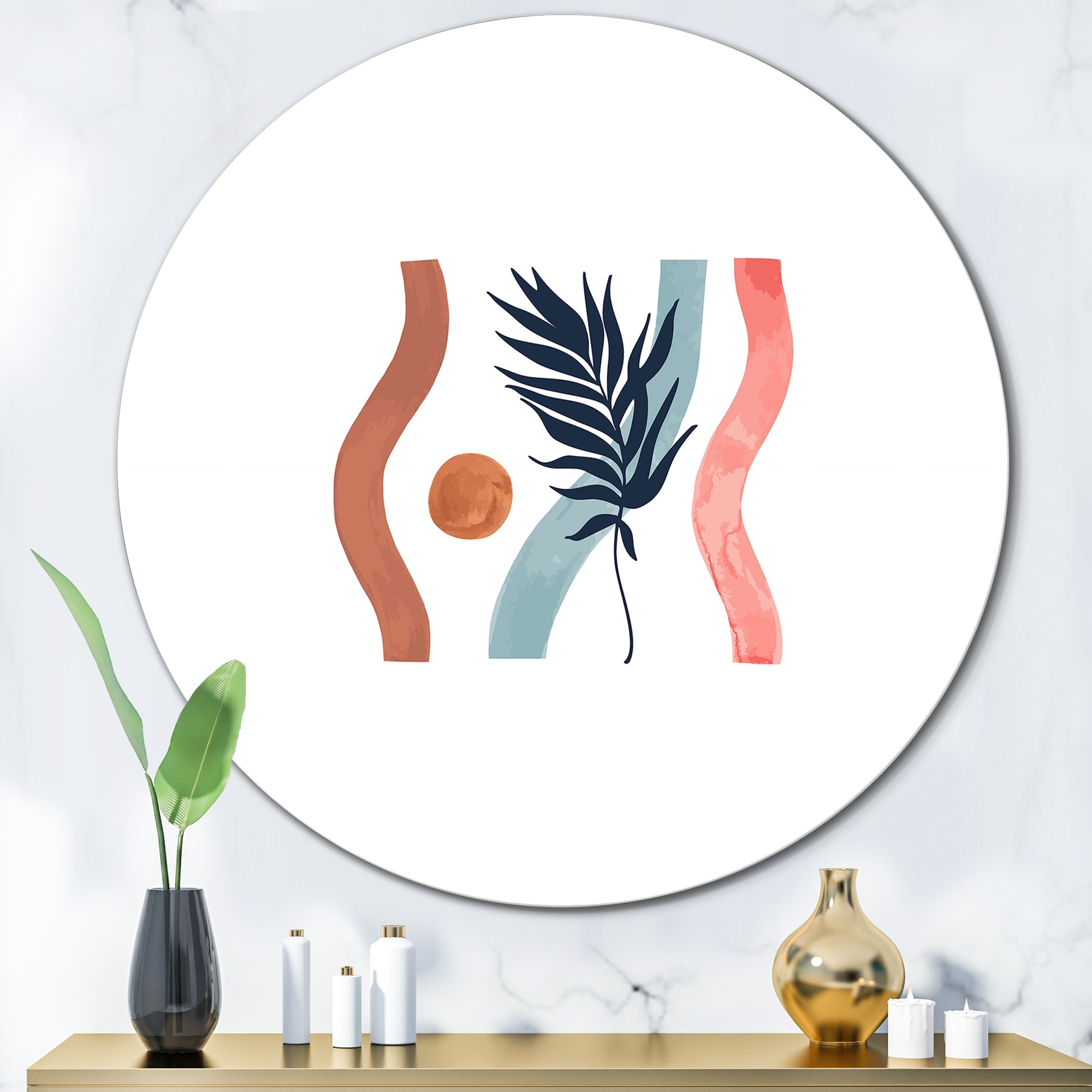 Designart 'Tropical Leaf And Wavy Stripes' Tropical Metal Circle Wall Art