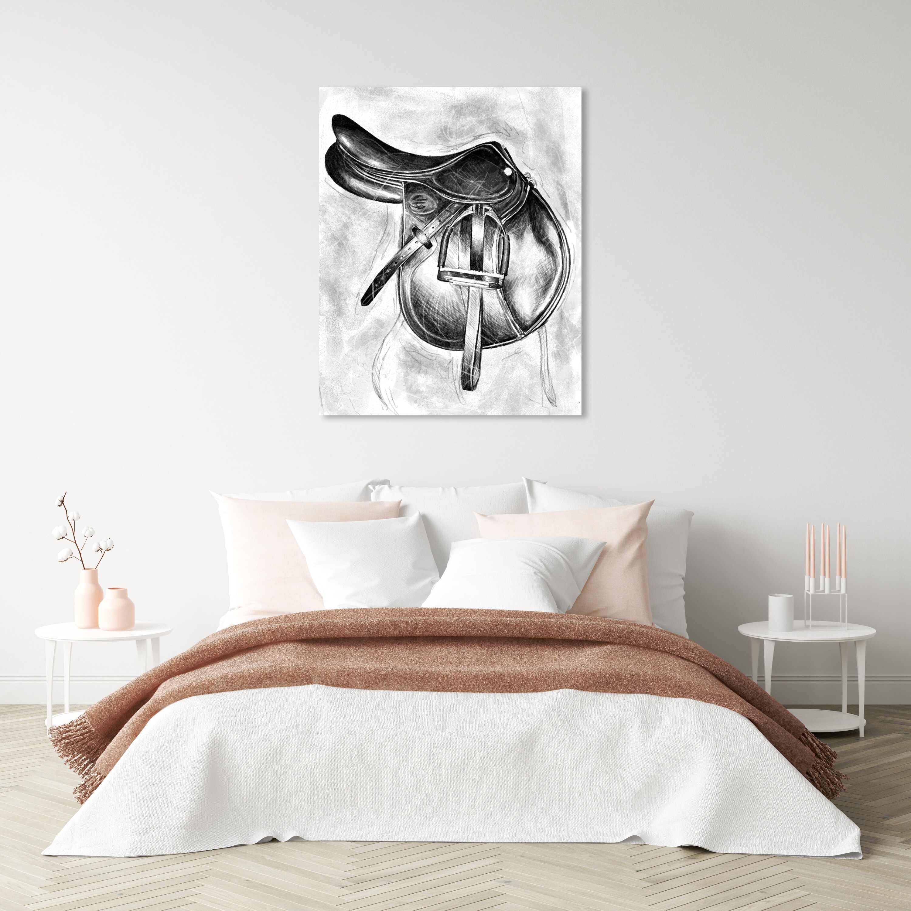 Oliver Gal 'Jumping Saddle' Animals Wall Art Canvas Print Farm Animals - Black, White