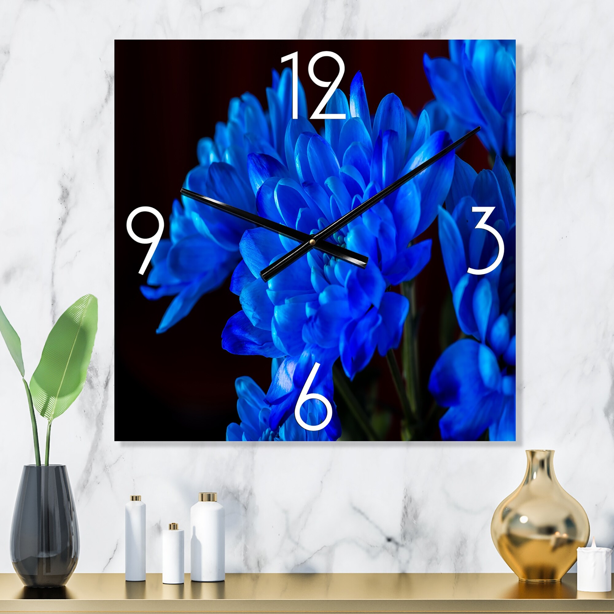 Designart 'Blue Chrysanthemum Flowers on Black II' Traditional Wall Clock Decor