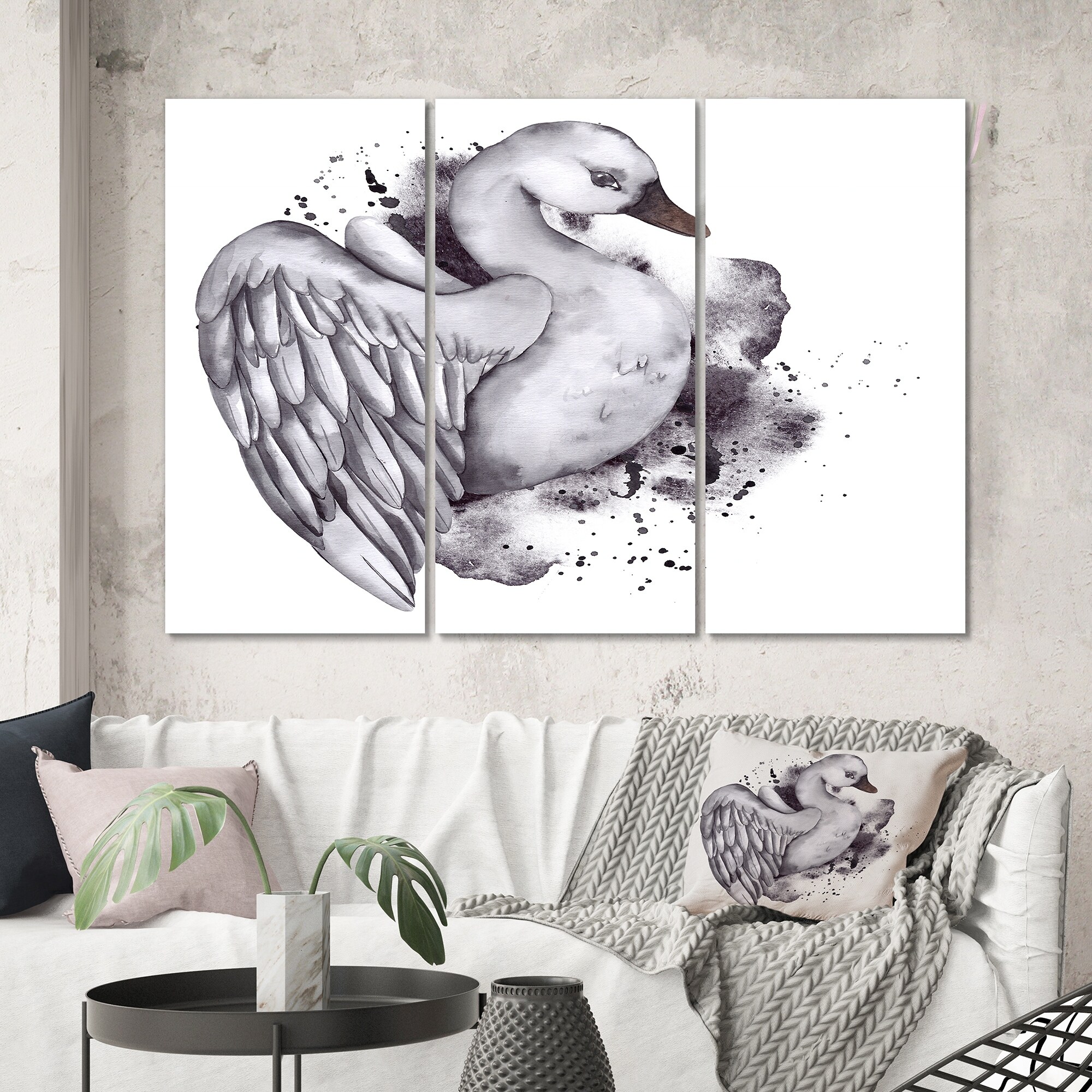 Designart "Grey Duck With Open Wings" Traditional Canvas Wall Art Print