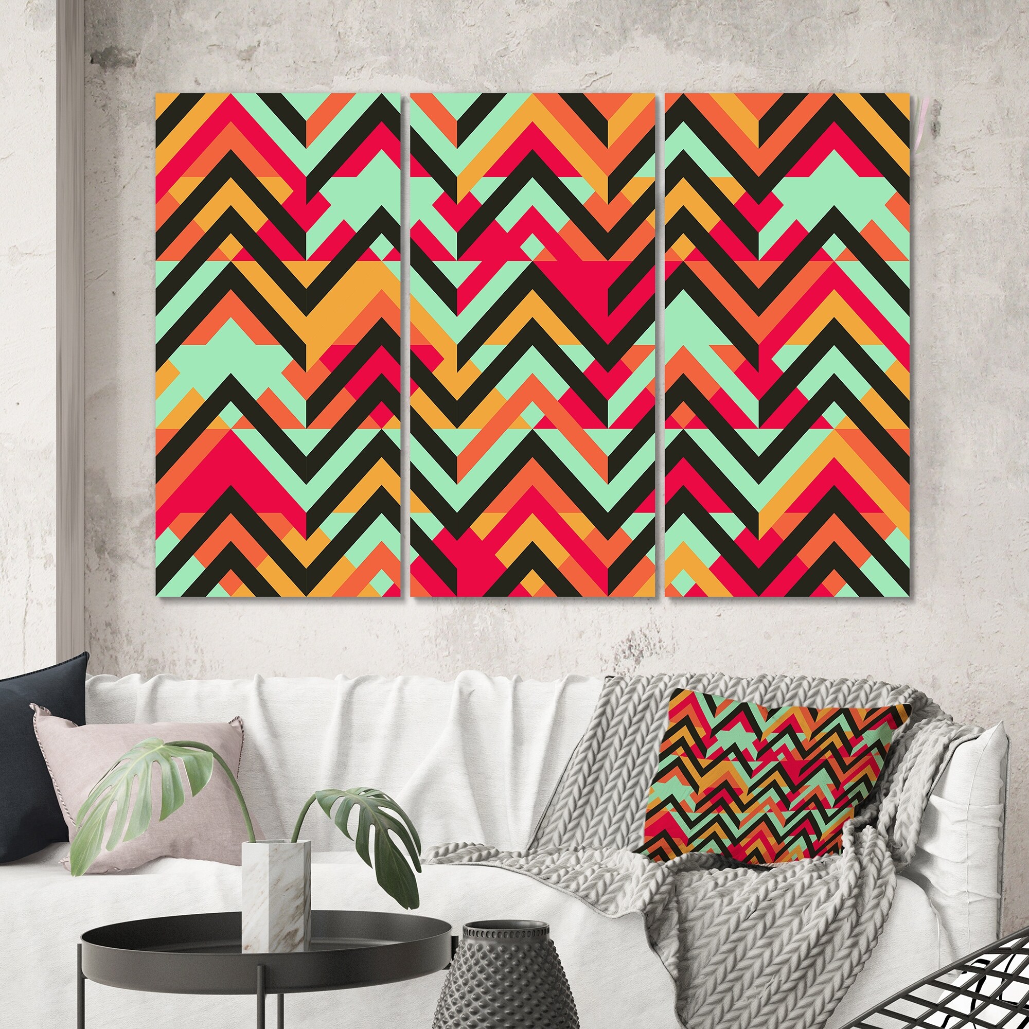 Designart "Ethnic Zigzag in Red And Blue I" Patterned Canvas Wall Art Print