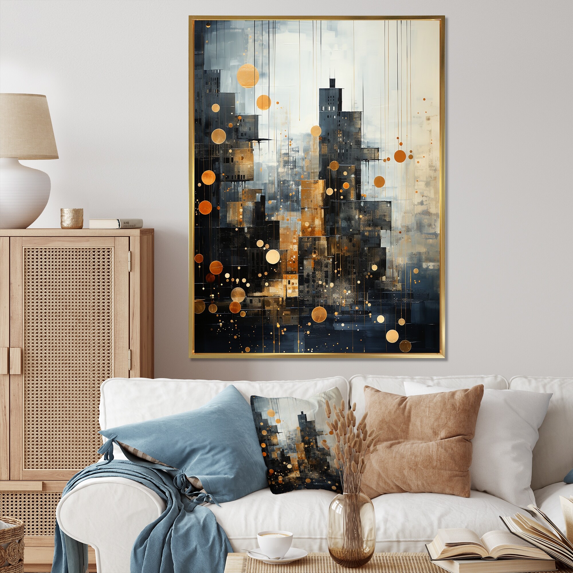 Designart "Abstract Towers of Specks I" Towers Framed Wall Decor