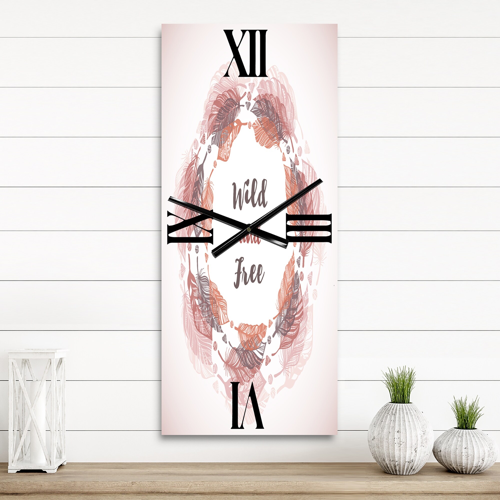 Designart 'Feather Wreath in Boho Style' Bohemian & Eclectic Metal Wall Clock