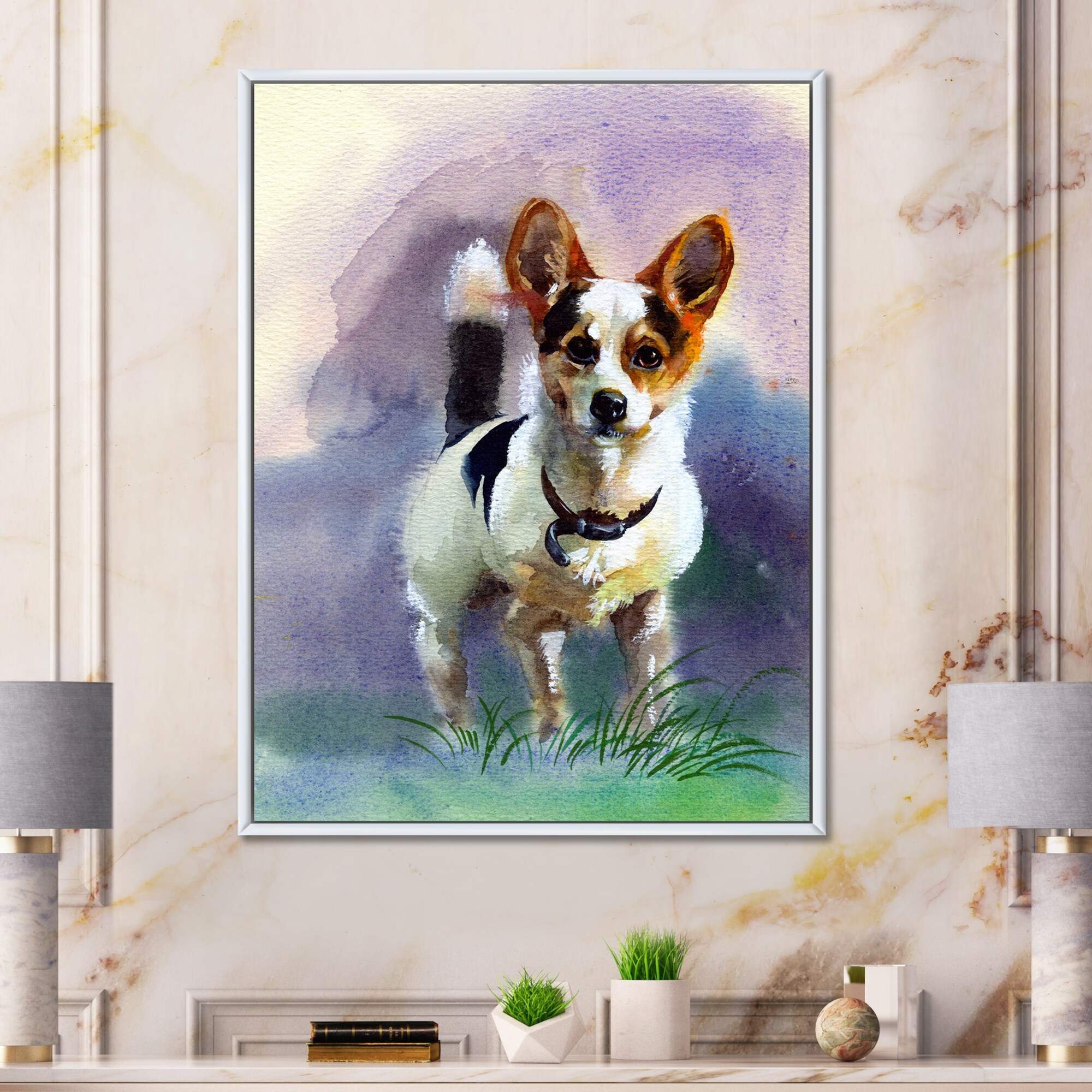 Designart "Portrait Of a Little White Dog" Traditional Framed Canvas Wall Art Print
