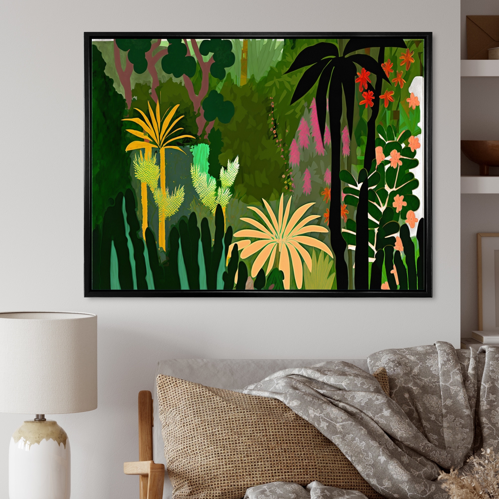 Designart "Blossoming And Vibrant Jungle Flora V" Floral & Botanical Framed Canvas Wall Art Print